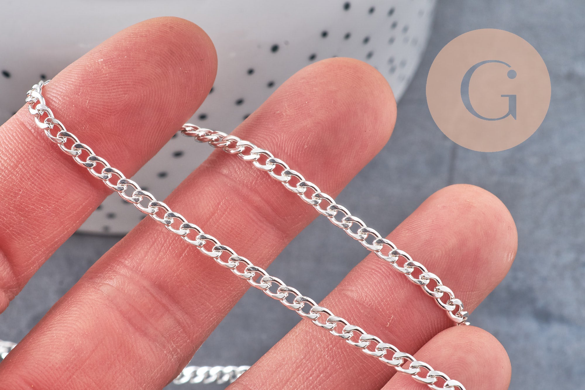 Une chaîne chic et intemporelle, parfaite pour créer des bijoux argentés durables et élégants.