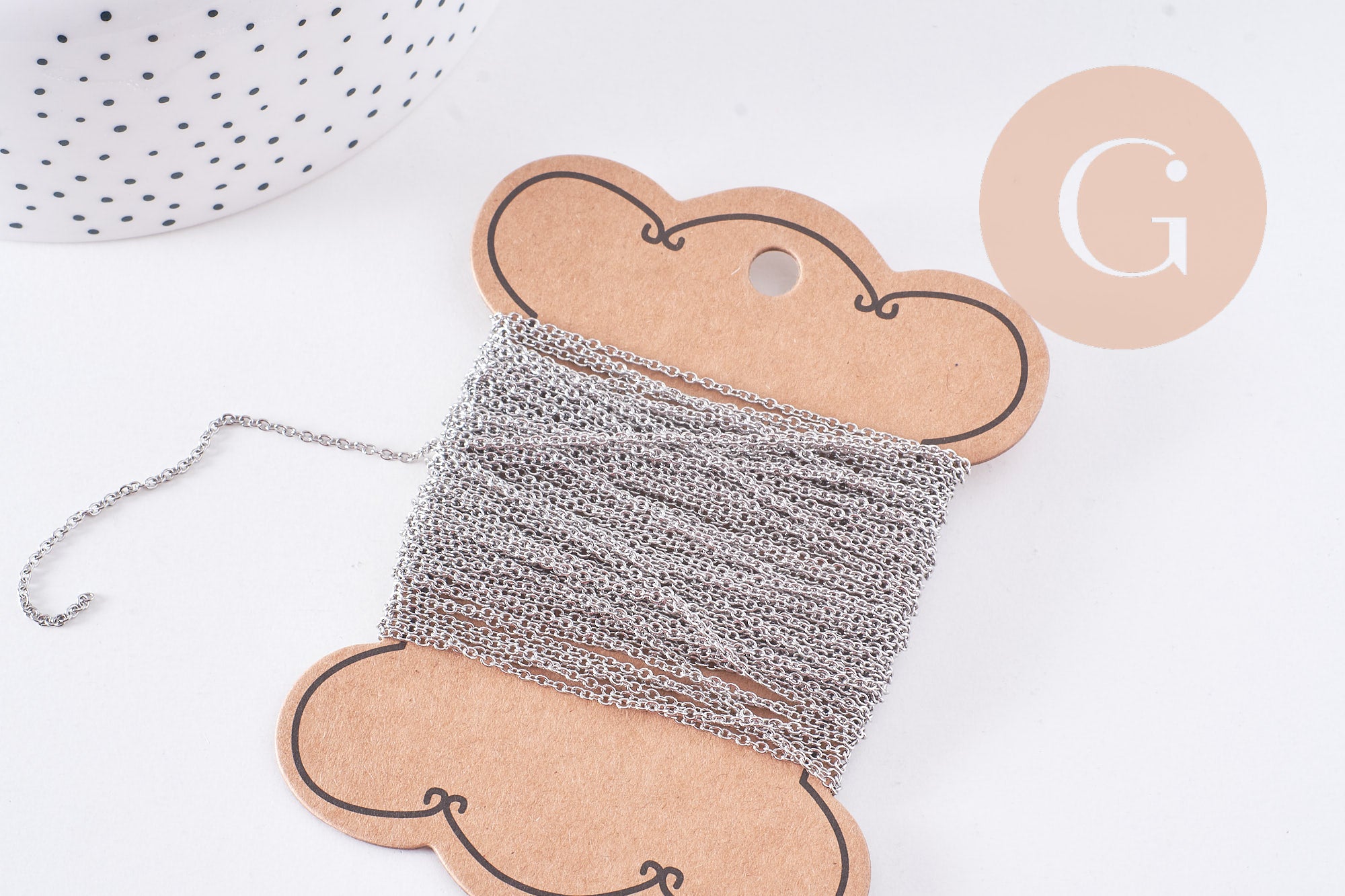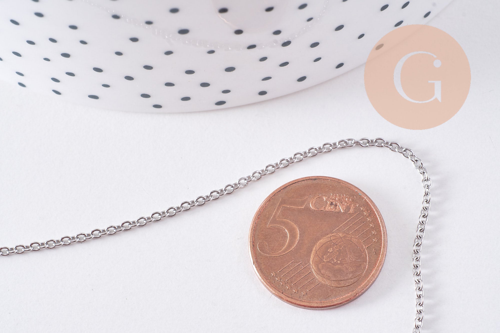 Chaine maille forçat acier inoxydable platine 2mm, x1 mètre (G10678)