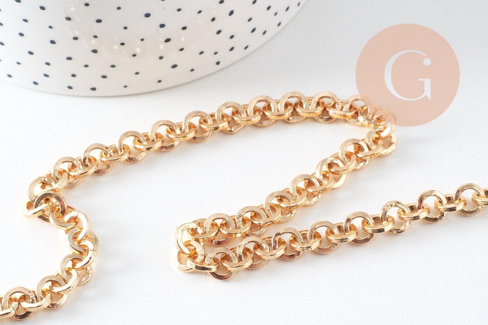 Apportez de la brillance et de la légèreté à vos bijoux DIY avec cette chaîne maille rollo en aluminium doré, composée de maillons plats non soudés de 8 mm. Grâce à sa finition lumineuse et son poids plume, elle est parfaite pour créer des colliers, bracelets ou sautoirs élégants et tendance.