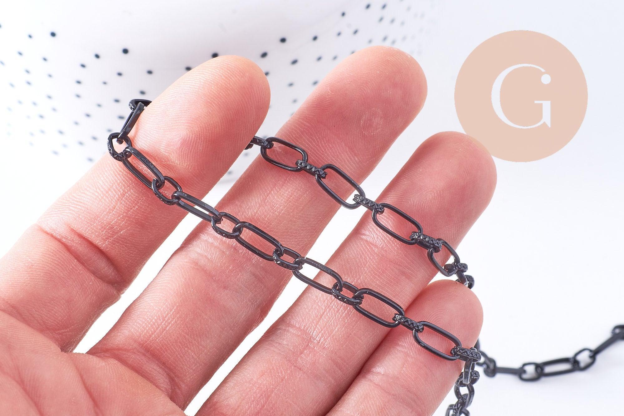 Apportez du caractère et une touche graphique à vos créations avec cette chaîne à mailles rectangulaires en fer noir intense. Sa finition noire profonde et ses maillons de forme allongée en font un choix idéal pour des bijoux modernes, audacieux ou minimalistes.