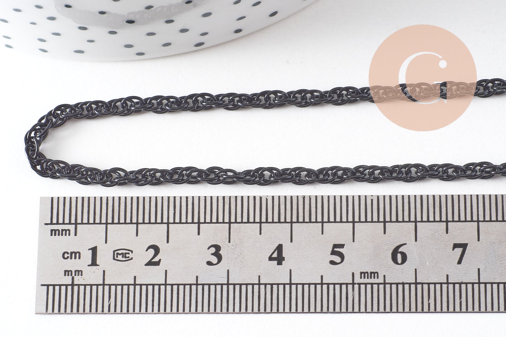 Chaine noire intense maille plate2.8mm, 4 mètres (G1373)