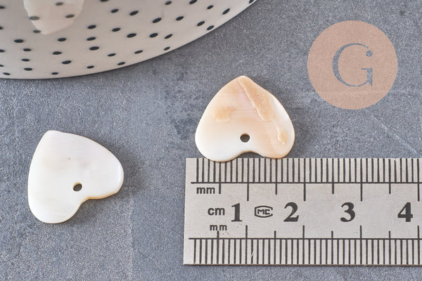 Charm coeur nacre blanche naturelle, fourniture créative, pendentif coeur, coeur nacre, coquillage blanc, création bijoux, 19mm, lot de 5