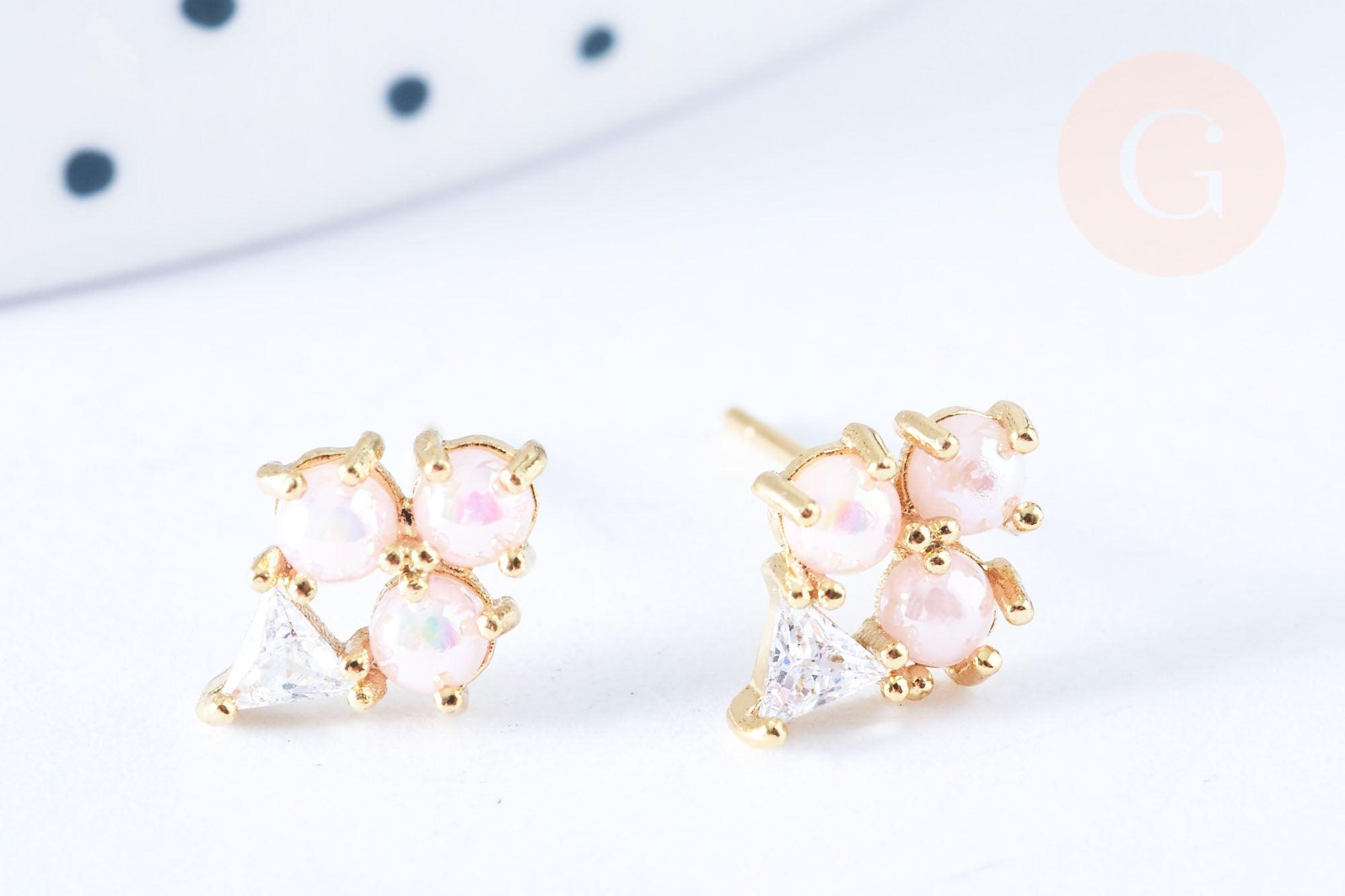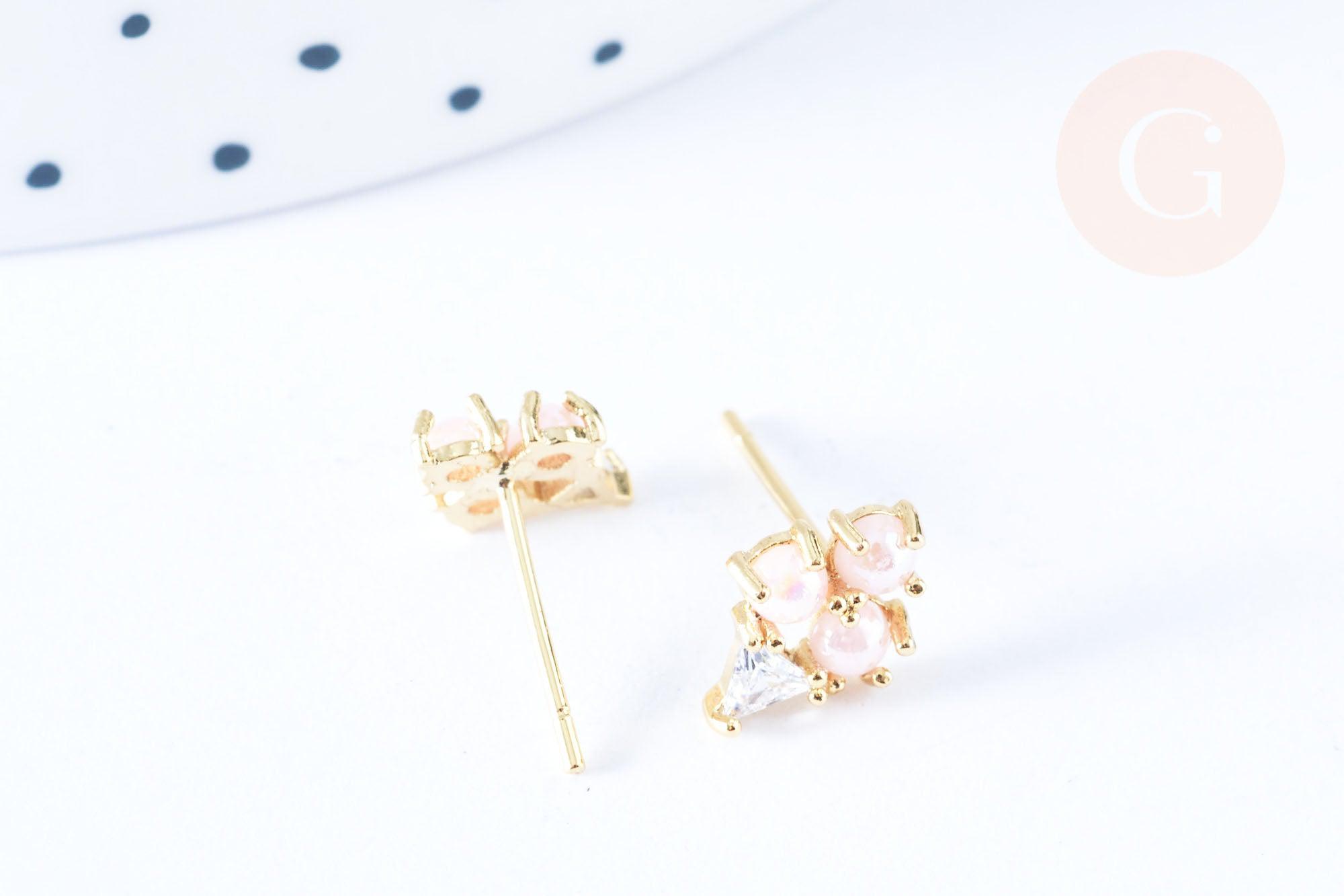 Clous d'oreille cornet de glace laiton zircon perles avec poussoirs d'oreilles, idées cadeaux femmes fille, la paire (G7921)