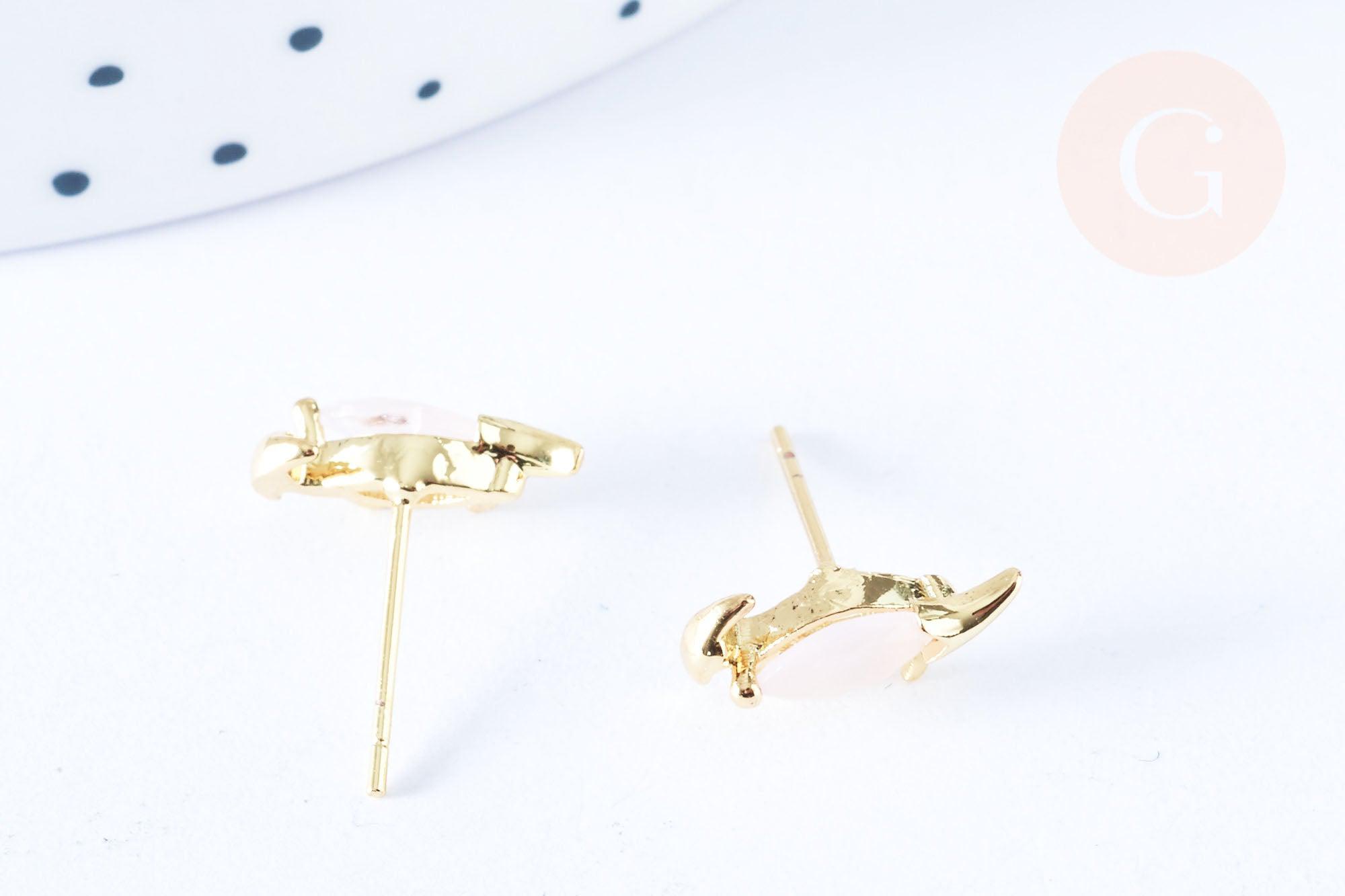 Ces petits clous d'oreilles dinausore avec une finition Dorée avec de délicats zircons roses clairs vont vous séduire par leur originalité. Elles feront un cadeau parfait pour les femmes ou filles. Ce modèle représente un parasaurolophus