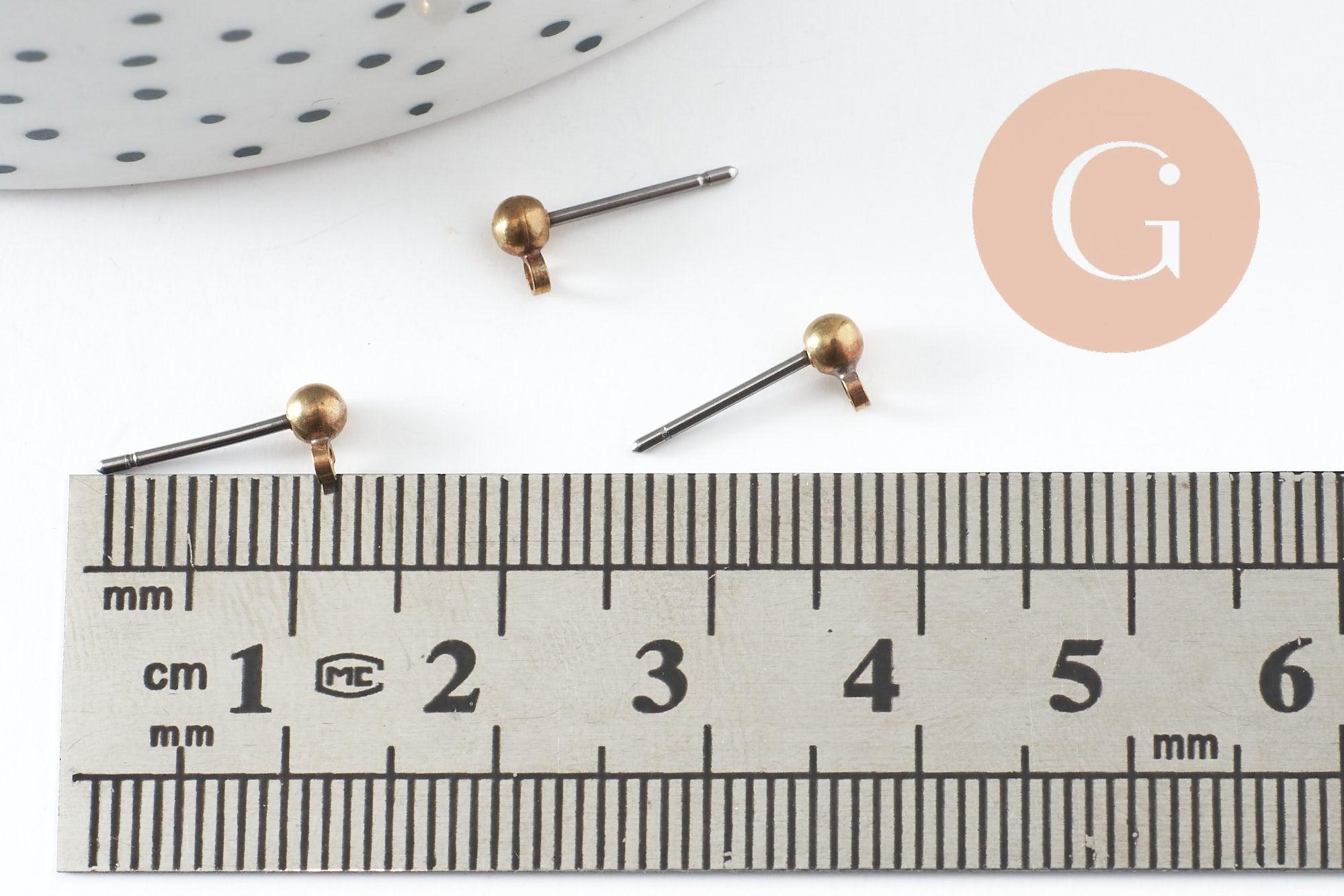 Pour réaliser vos propres boucles d'oreilles, voici un lot de 10 clous d'oreille en laiton brut doré et une tige en acier inoxydable pour un grand confort et un risque réduit d'allergie.