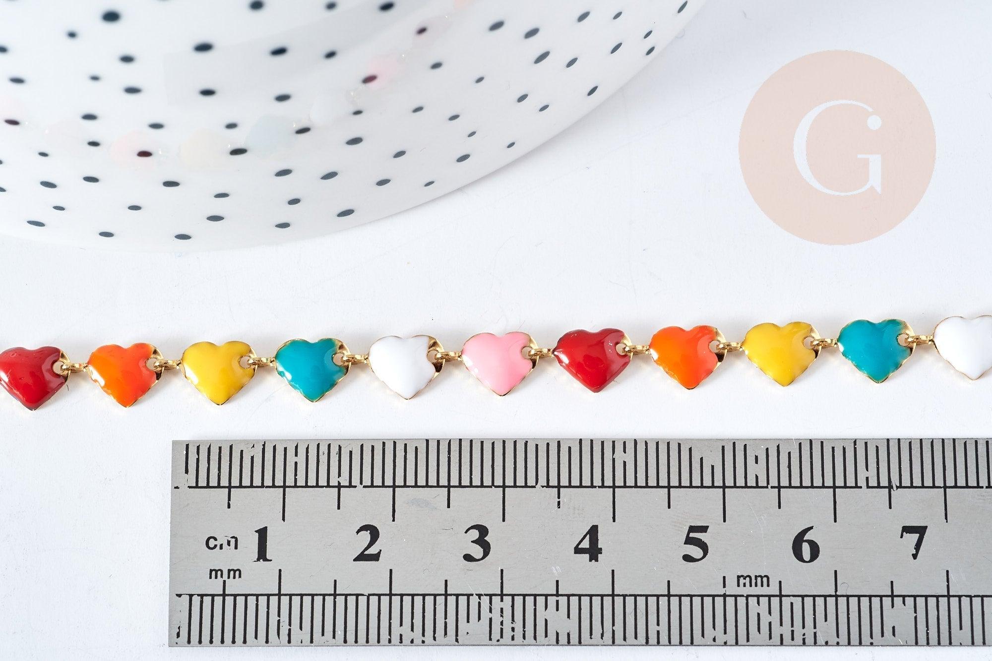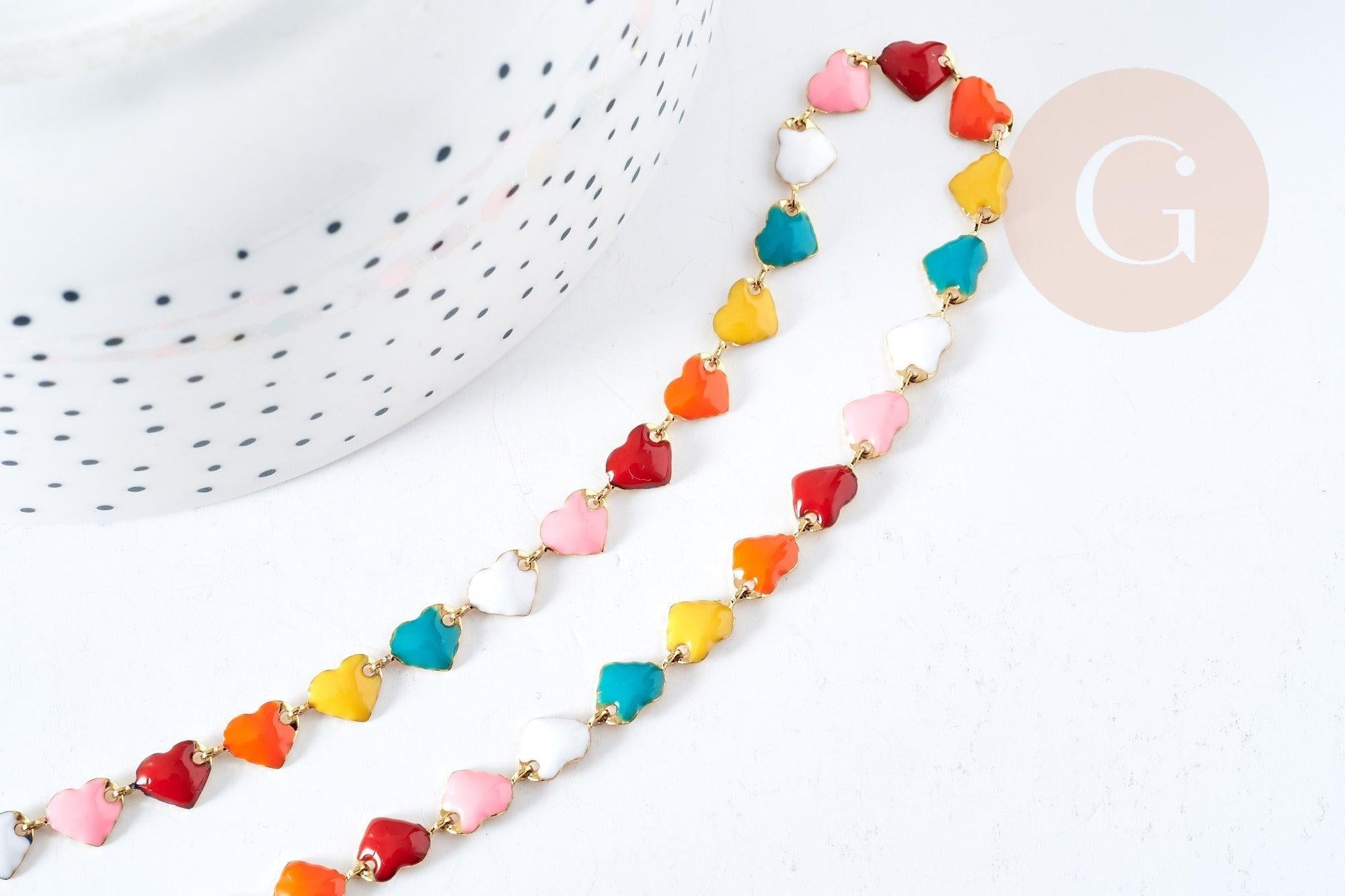 EP-Collier chaine coeur acier doré 304 inoxydable émaillé multicolore 45mm, idée cadeau anniversaire fête des mères femme x1 G8622