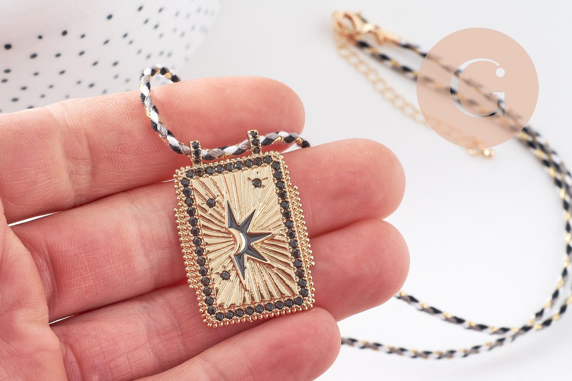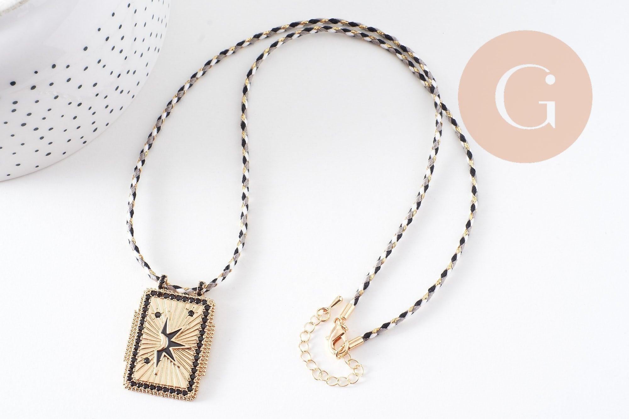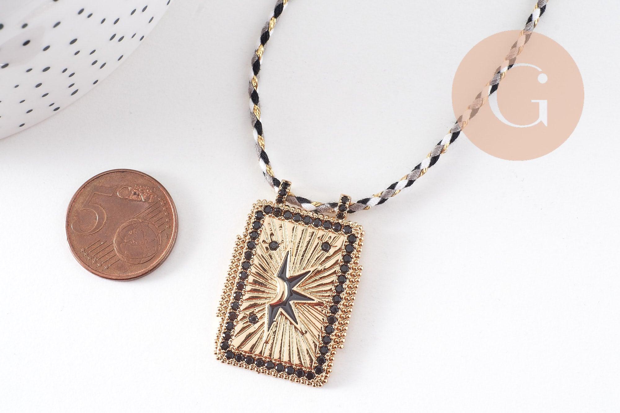 Apportez une touche de mystère et d’élégance à vos looks avec ce collier étoile noire en zamac doré, sublimé par des zircons noirs scintillants. Monté sur un cordon tressé raffiné, il s’inscrit parfaitement dans les tendances célestes et symboliques.