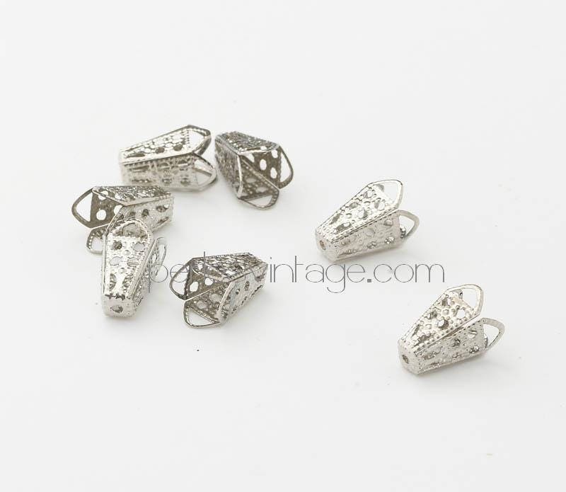 Cônes métal argent filigrane , fournitures créatives, embouts bijoux, création bijoux, apprêts argentés,dentelle argent, collerette,10 pcs