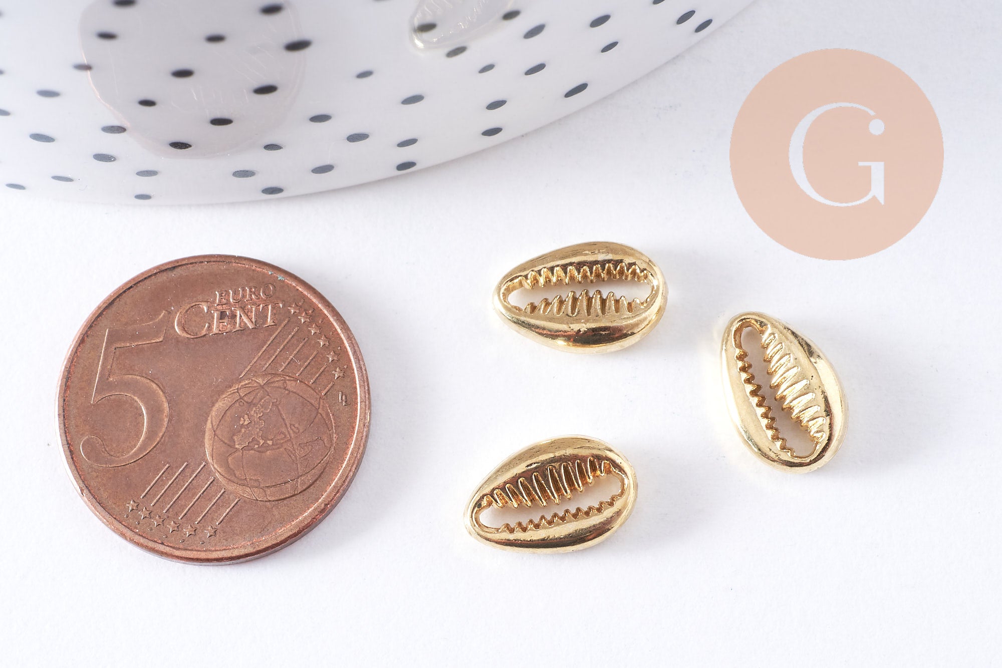 D'autres cauris en métal doré sont disponibles dans la boutique d'apprêts et breloques gingerlilyfrance