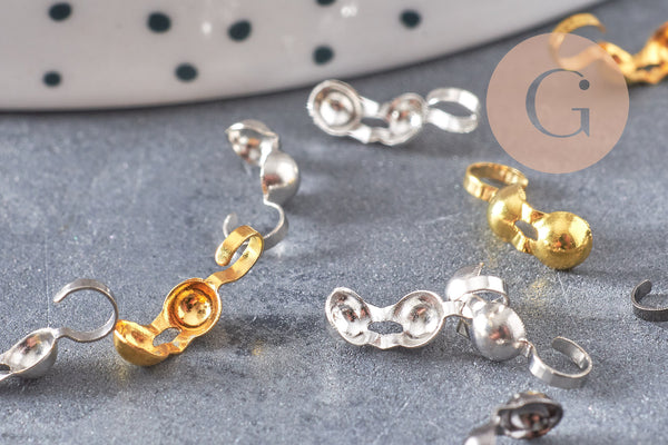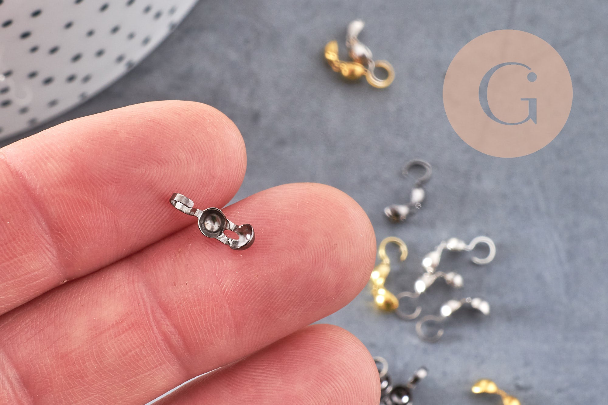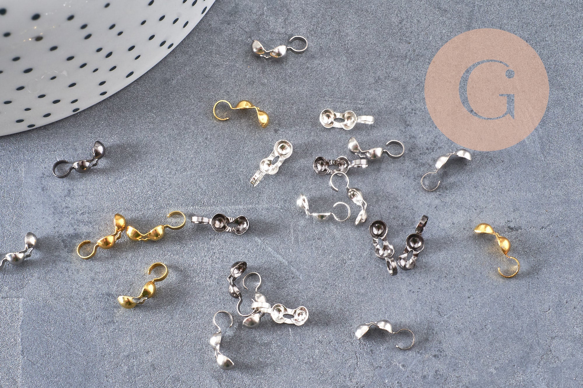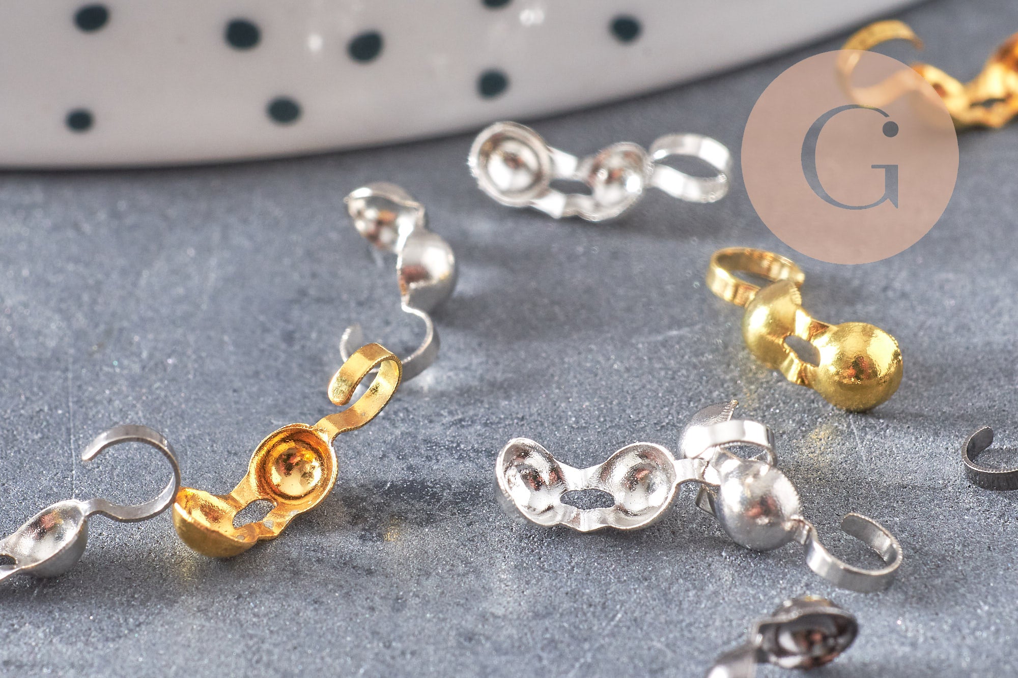 connecteurs argentés dorés bronze, fourniture créative,cache noeud, chaine boule, fabrication bijoux, apprêts argentés, lot de 5Gr