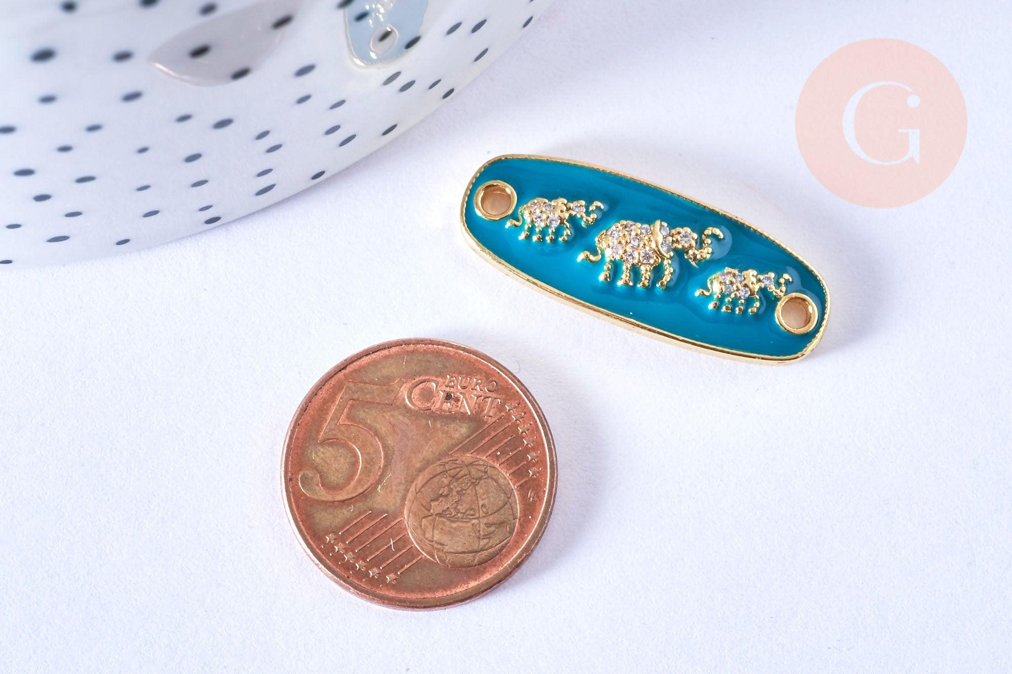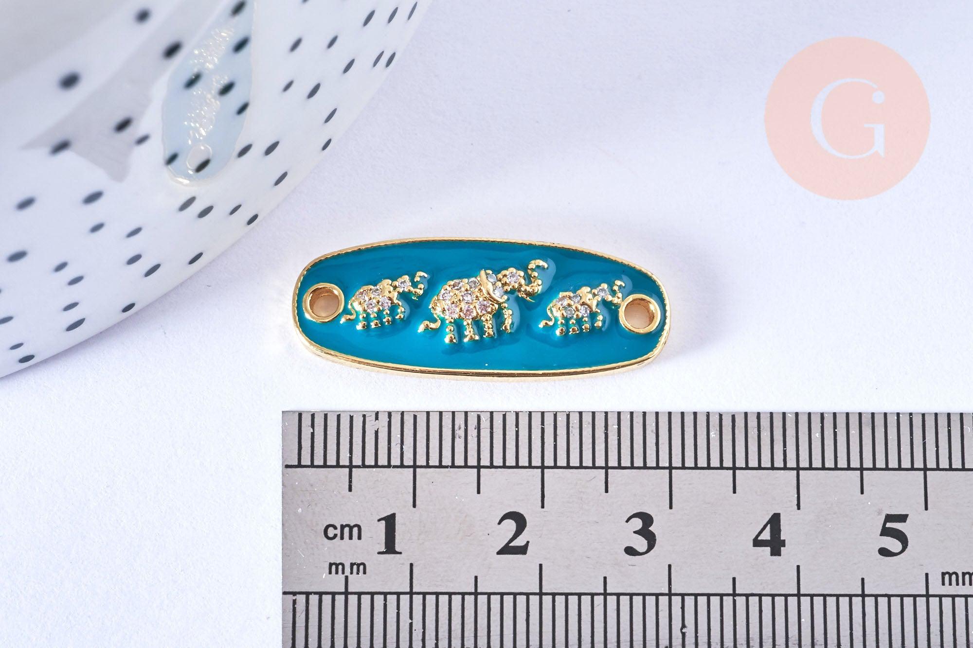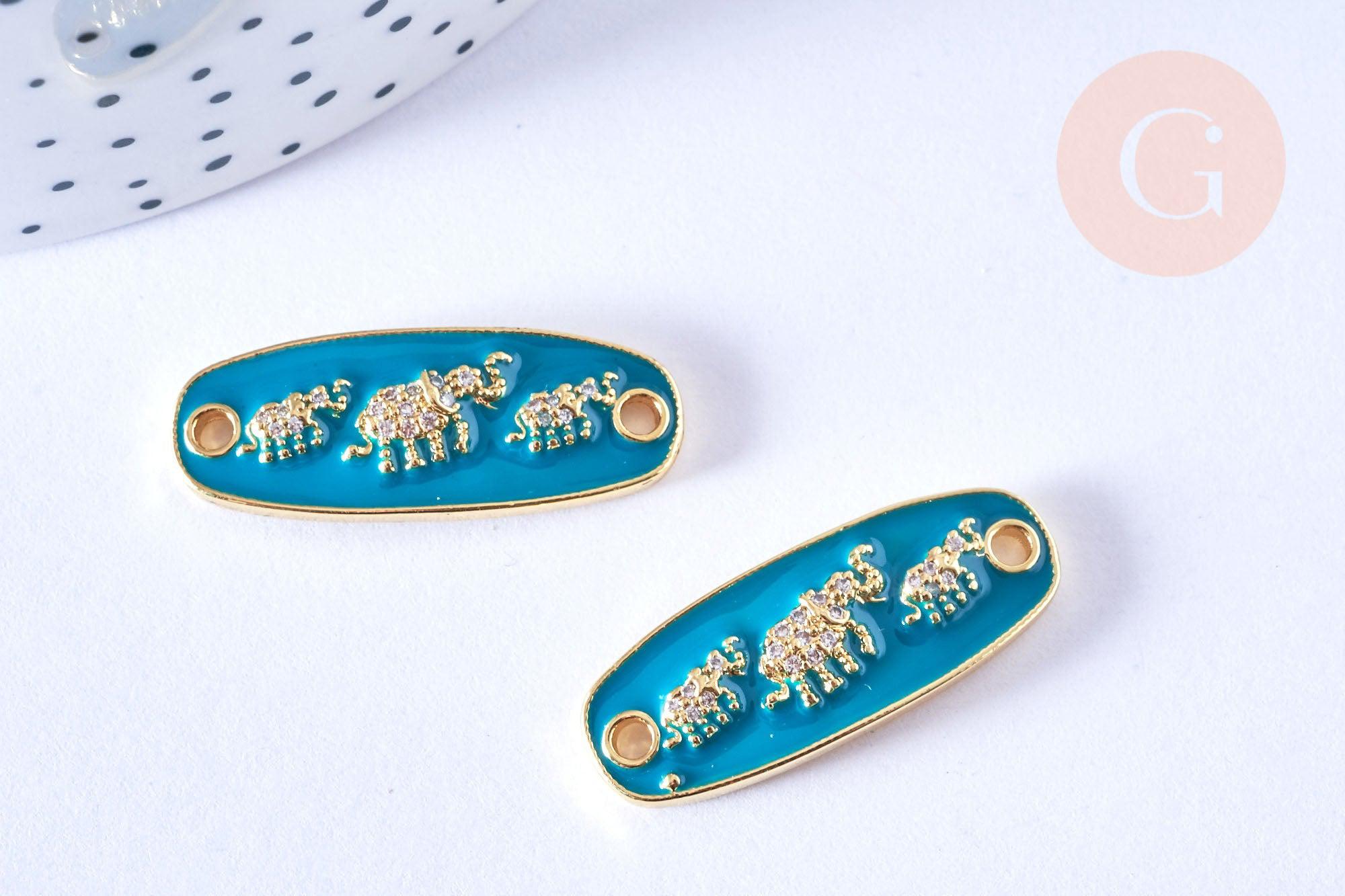 Ce connecteur est recouvert d'un émail bleu turquoise et une finition doré laiton doré