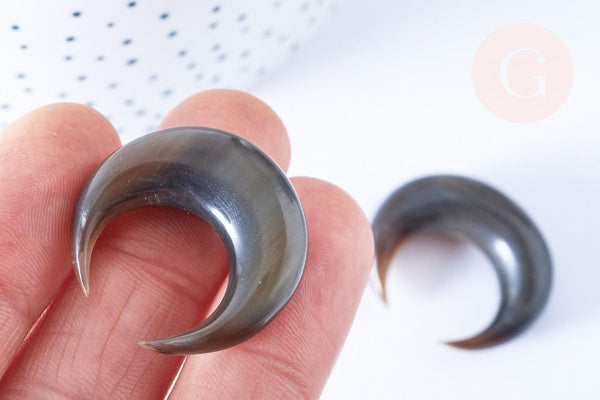Pendentif Lune corne noire naturelle 37x10mm, pendentif lune en corne naturelle blanche, piercing écarteur corne naturelle x1 - G6480
