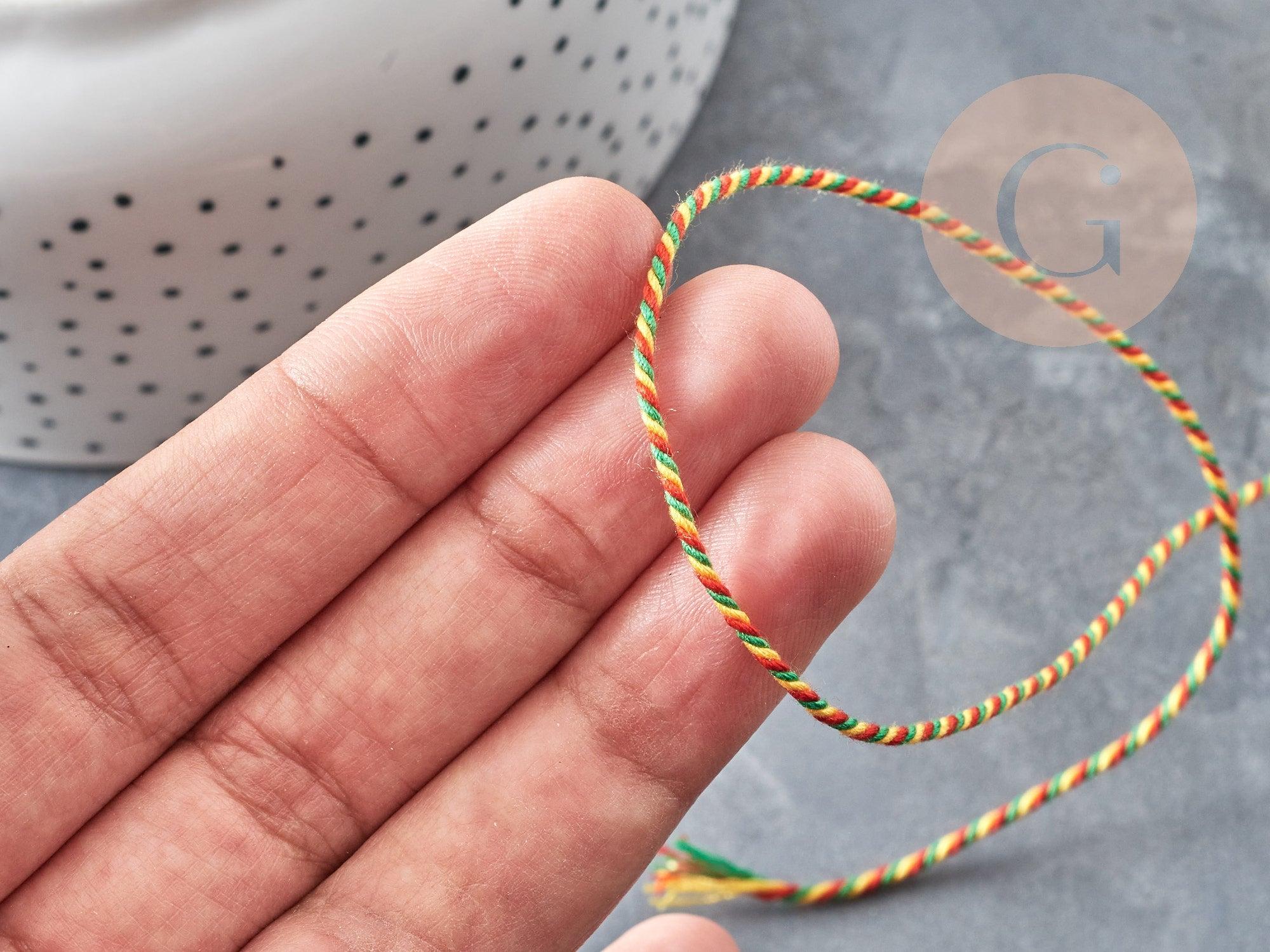 Cordon en coton tressé jaune rouge vert 1.2mm, cordon pour bijoux scrapbooking et fabrication bijoux, x1 mètre G9197