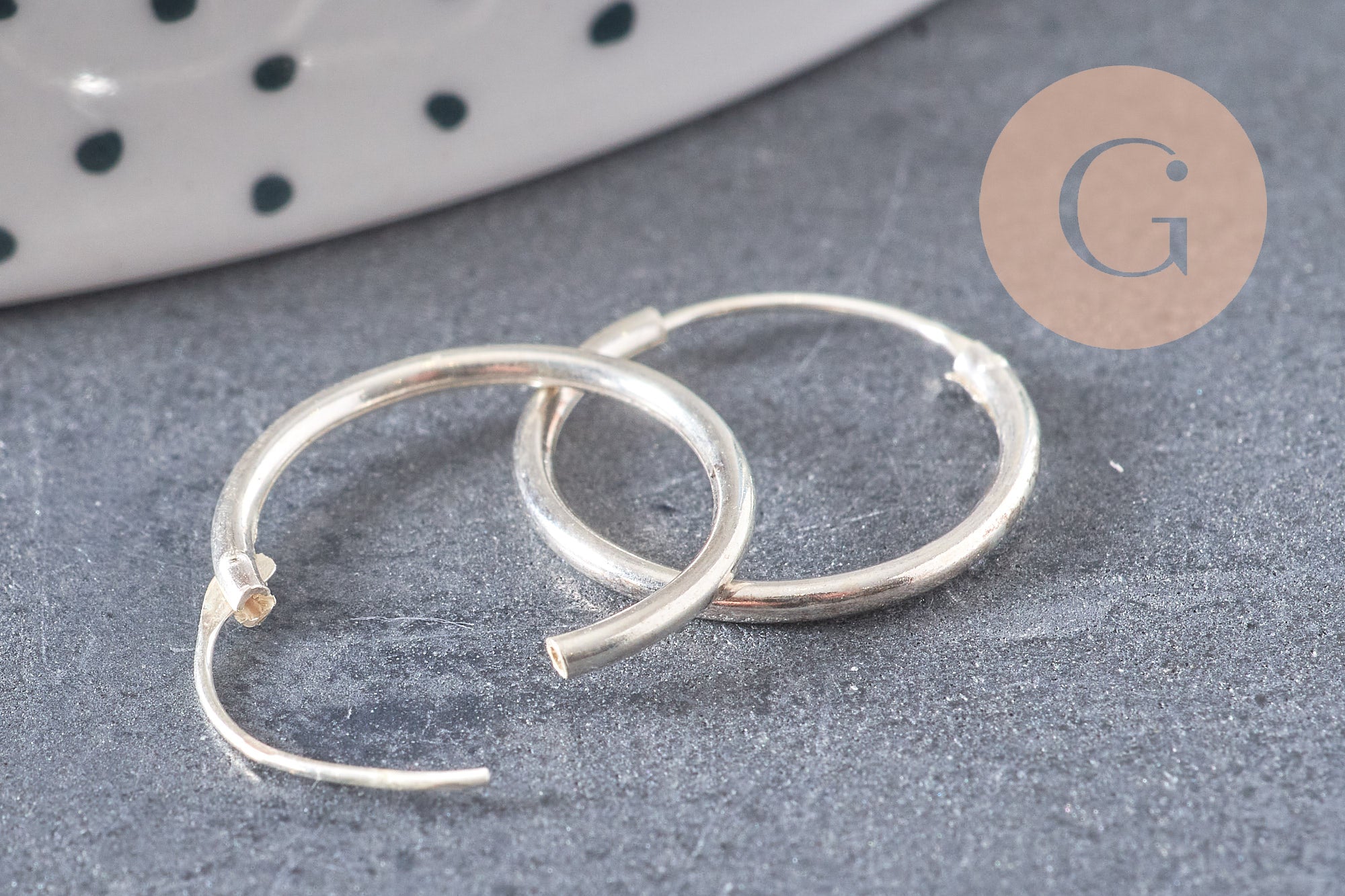 créoles fine argent massif, fourniture créative,boucles argent,argent massif,création bouces,argent 925, création bijoux,16mm,la paire