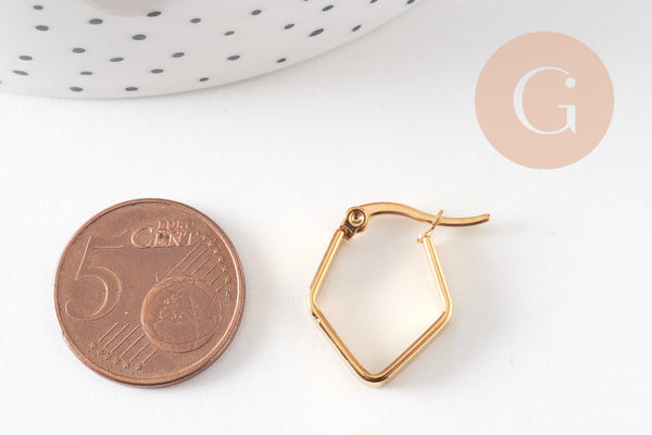 créoles géométrique acier doré, bijoux doré, fournitures créatives,création bijoux, boucles losange,sans nickel,la paire,boucles acier, 16mm