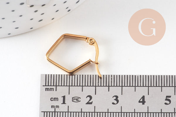 Créoles géométrique acier doré, boucles losange,sans nickel, boucles acier, 16mm, la paire (G2325)