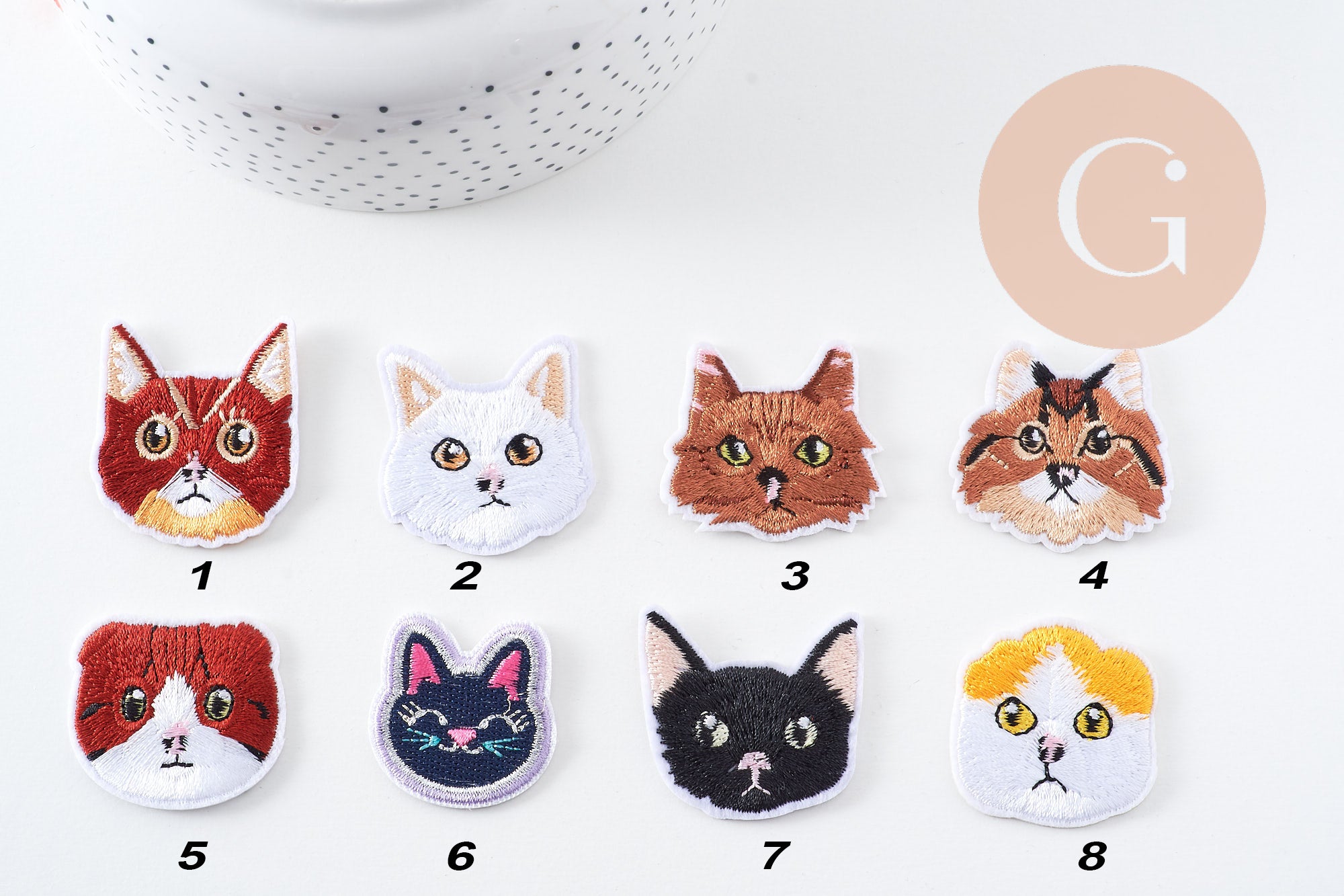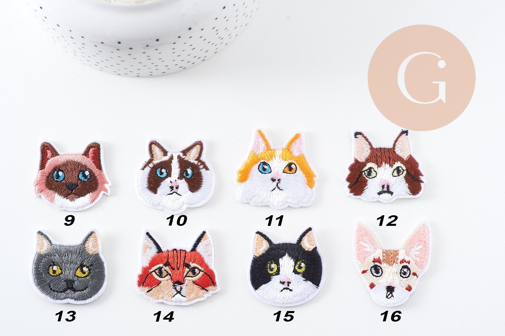 - Motif : tête de chat, coloris assortis