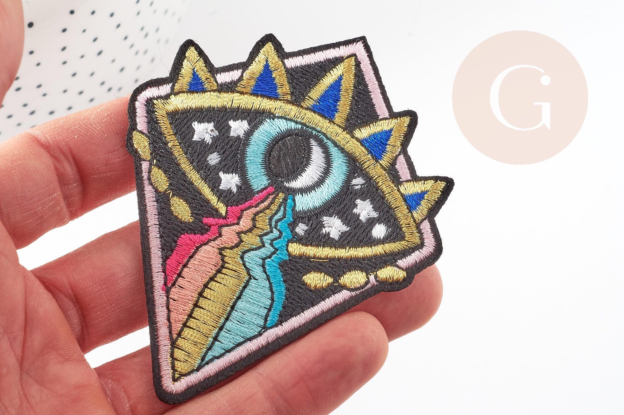 Cet écusson brodé thermocollant est un accessoire idéal pour personnaliser vos vêtements et accessoires de mode. L'oeil mystique est un motif original et tendance qui apportera une touche de style à toutes vos créations.