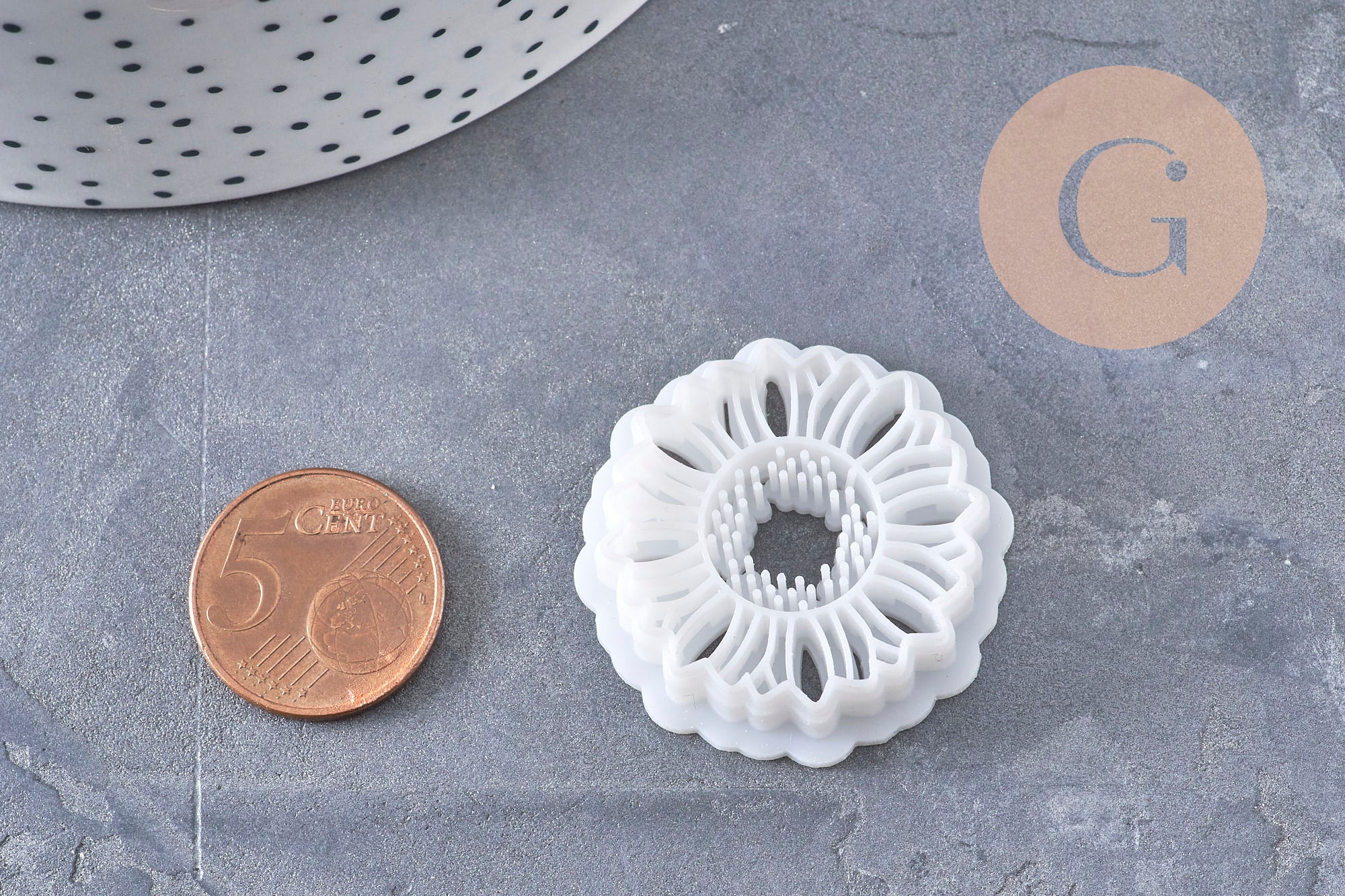 Emporte-pièce rond fleur tournesol 30 mm pour pâte polymère, idéal pour créer des boucles d’oreilles interchangeables solaires et modernes.