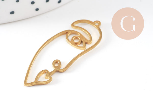 Pour adopter la tendance minimaliste, adoptez de suite ce pendentif visage en laiton brut doré avec anneau.
