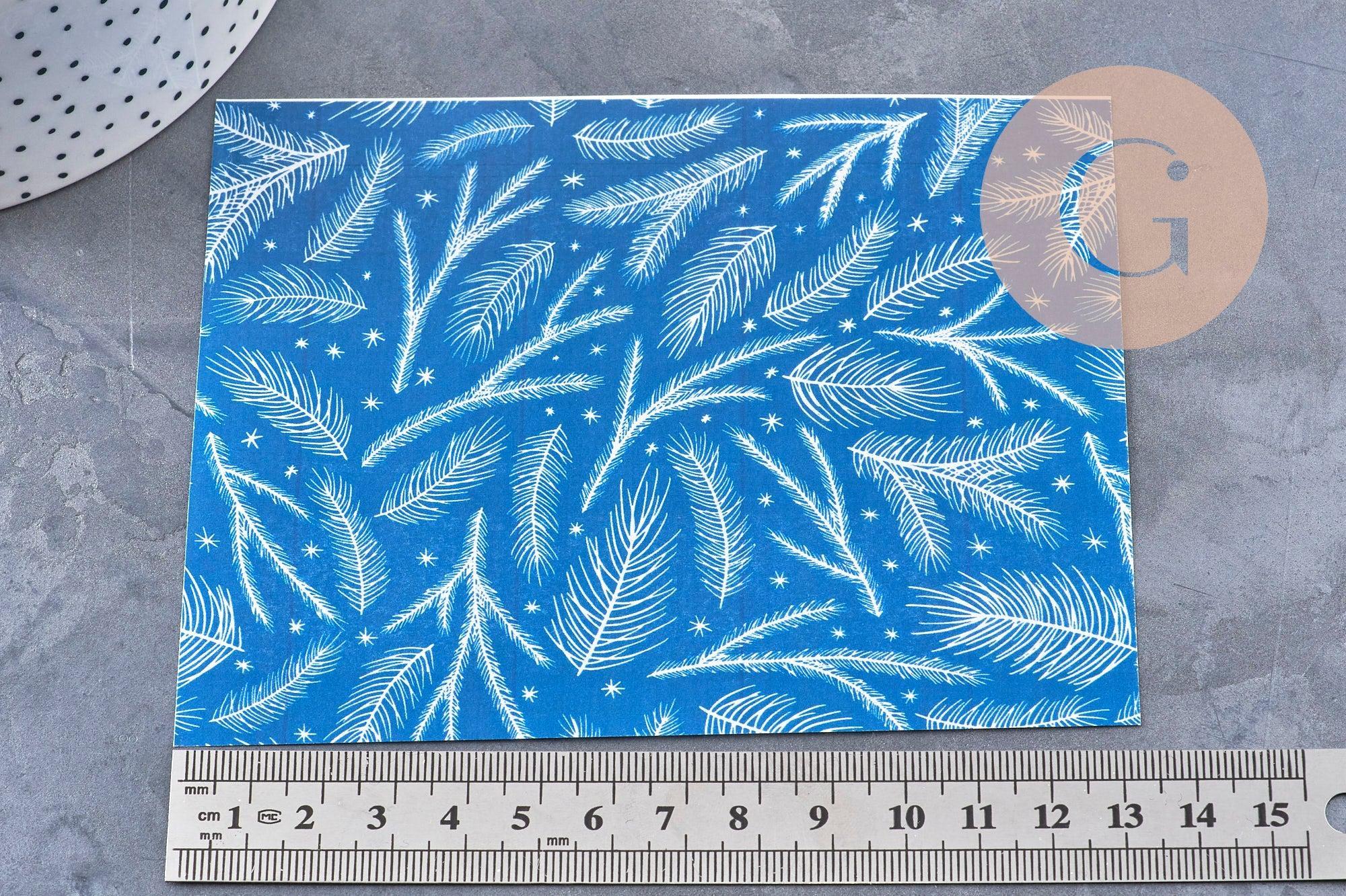 Apportez une atmosphère hivernale, douce et élégante à vos créations avec cette feuille de transfert pour pâte polymère – motif Hiver fond bleu. Le contraste délicat entre les branches de sapin blanches et le fond bleu profond évoque les paysages d’hiver, la neige et les fêtes de fin d’année. Un motif raffiné, idéal pour des bijoux poétiques, discrets et intemporels.