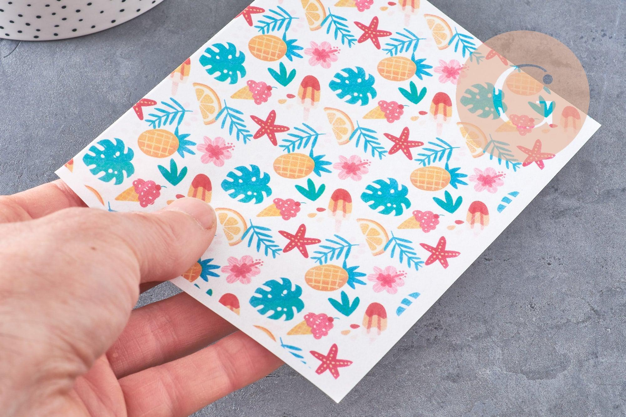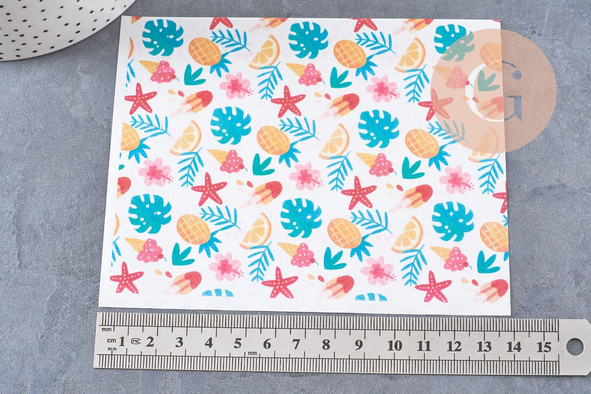 Apportez une touche estivale et ensoleillée à vos créations avec cette feuille de transfert pour pâte polymère. Ses motifs colorés d’étoiles de mer, glaces, feuilles tropicales, fleurs, ananas et agrumes évoquent les vacances et la bonne humeur, parfaits pour des bijoux ludiques et joyeux.