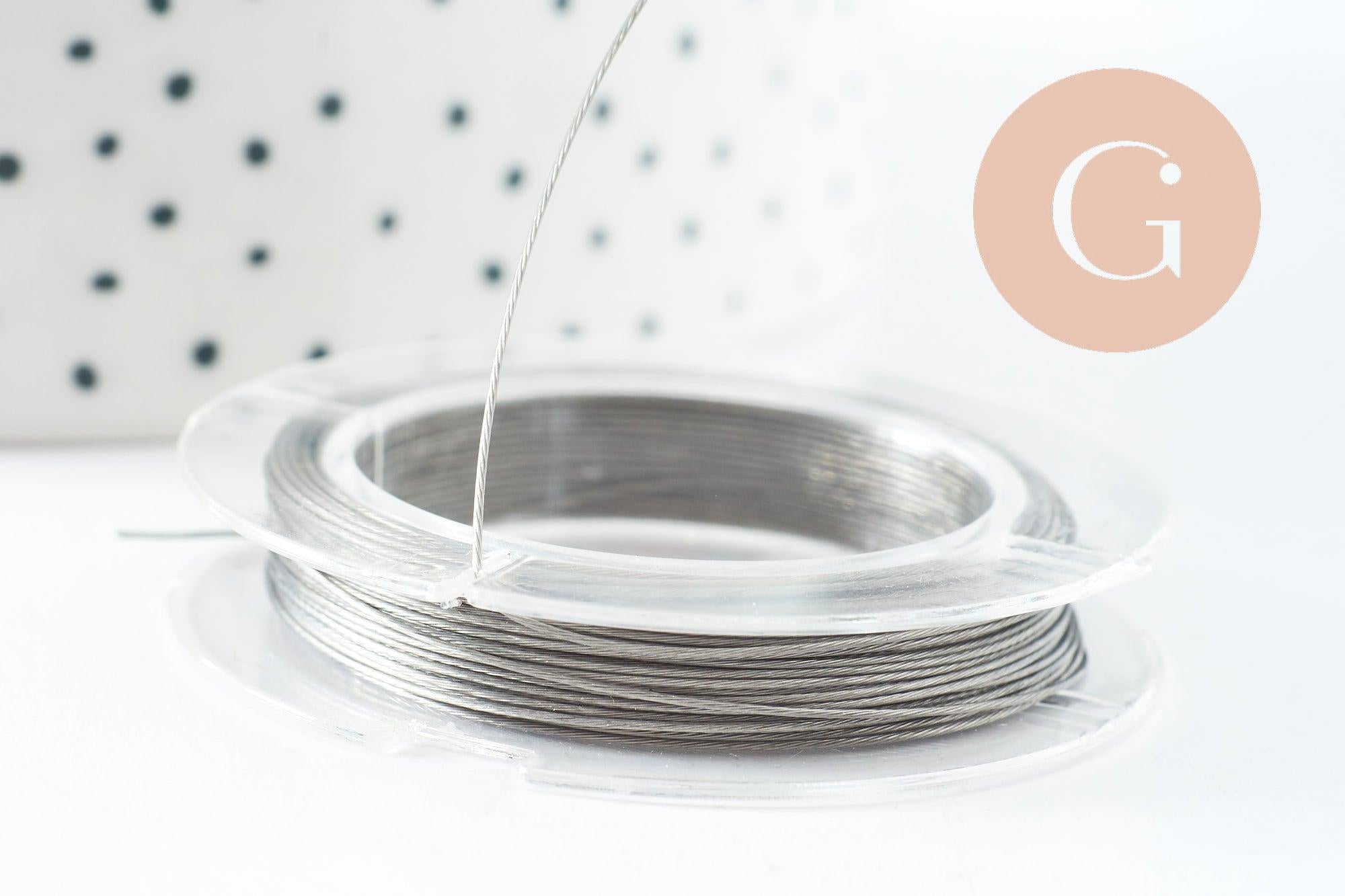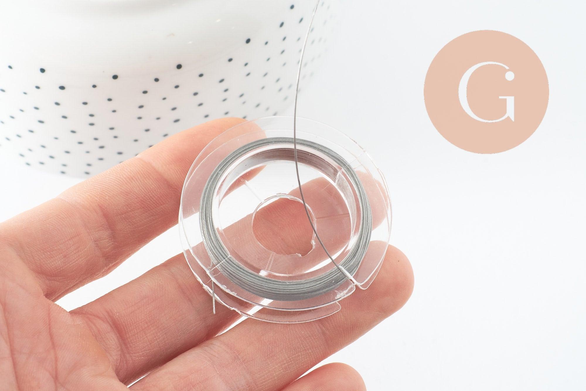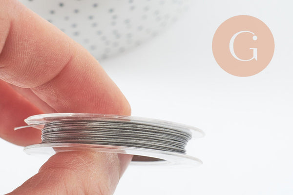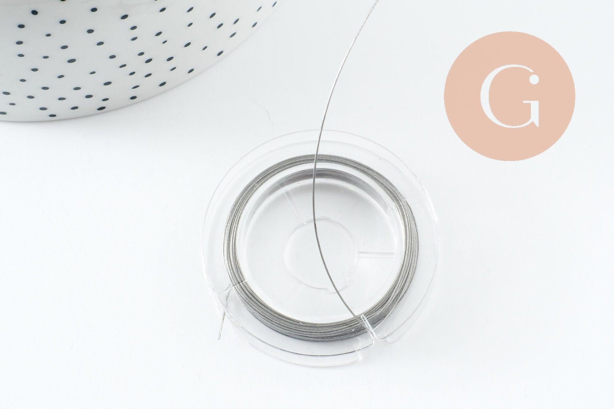 Ce fil câblé en acier inoxydable 0.38mm est parfait pour la création de bijoux fantaisie argentés, on l'utilise généralement pour enfiler des perles dans la confection de colliers, de bracelets ou encore de boucles d'oreilles.