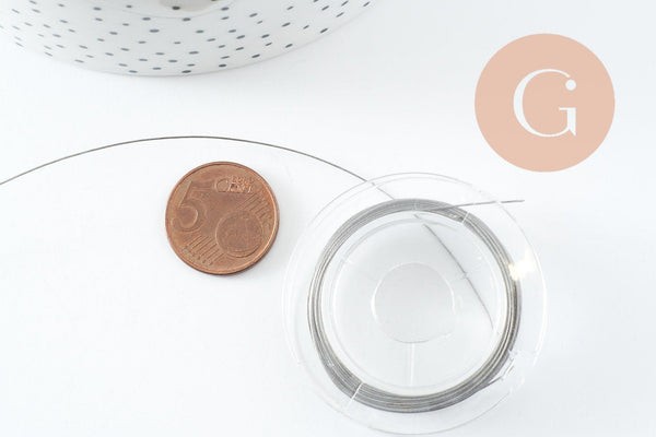 Une mini-bobine de 10 mètres de fil en acier inoxydable platine, enrobé de nylon.