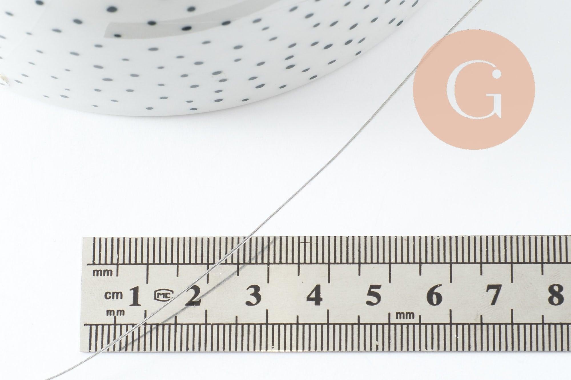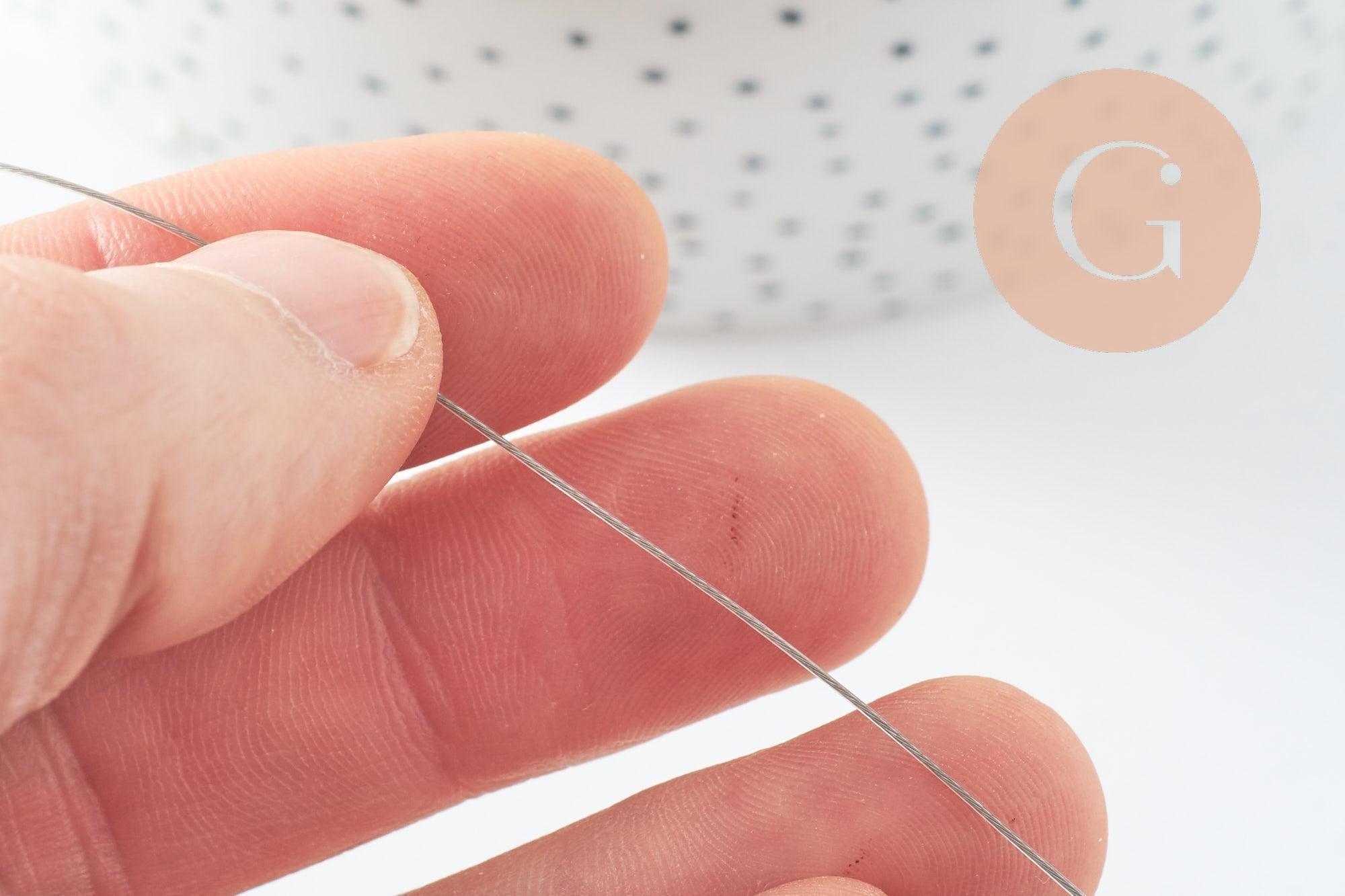 Ce fil câblé en acier inoxydable 0.5mm est un indispensable pour la création de bijoux fantaisie argentés, on l'utilise généralement pour enfiler des perles dans la confection de colliers, de bracelets ou encore de boucles d'oreilles.