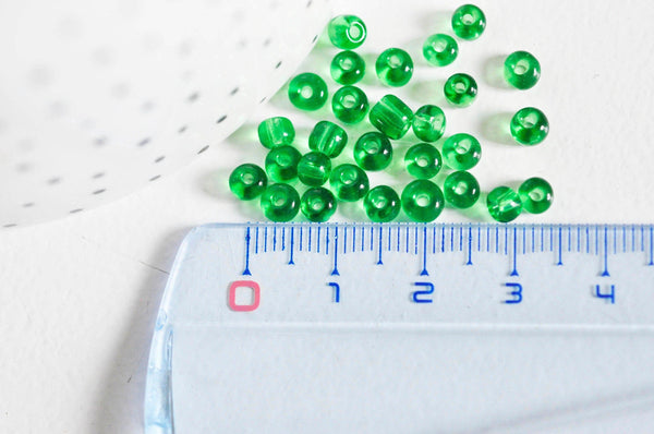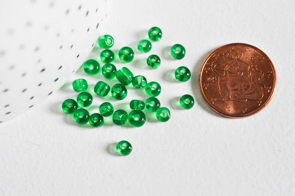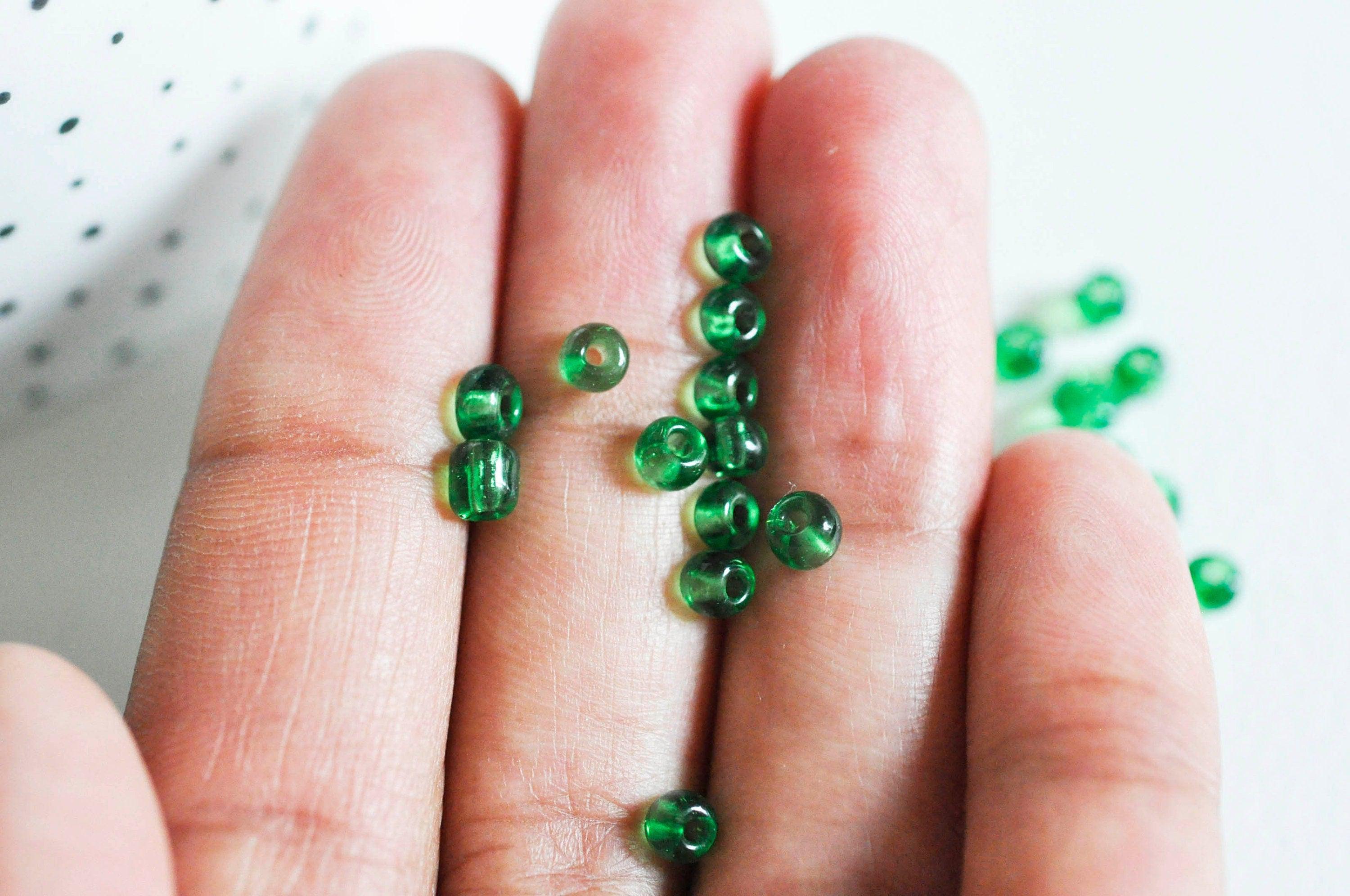 Grosses perles rocaille vert bouteille transparent 4mm,perles rocaille pour création bijoux, x 10Gr (G5400)