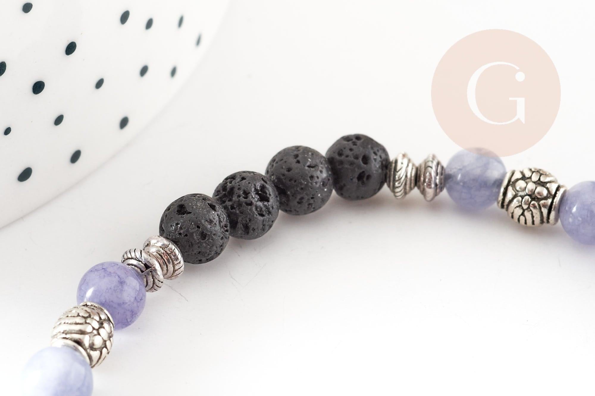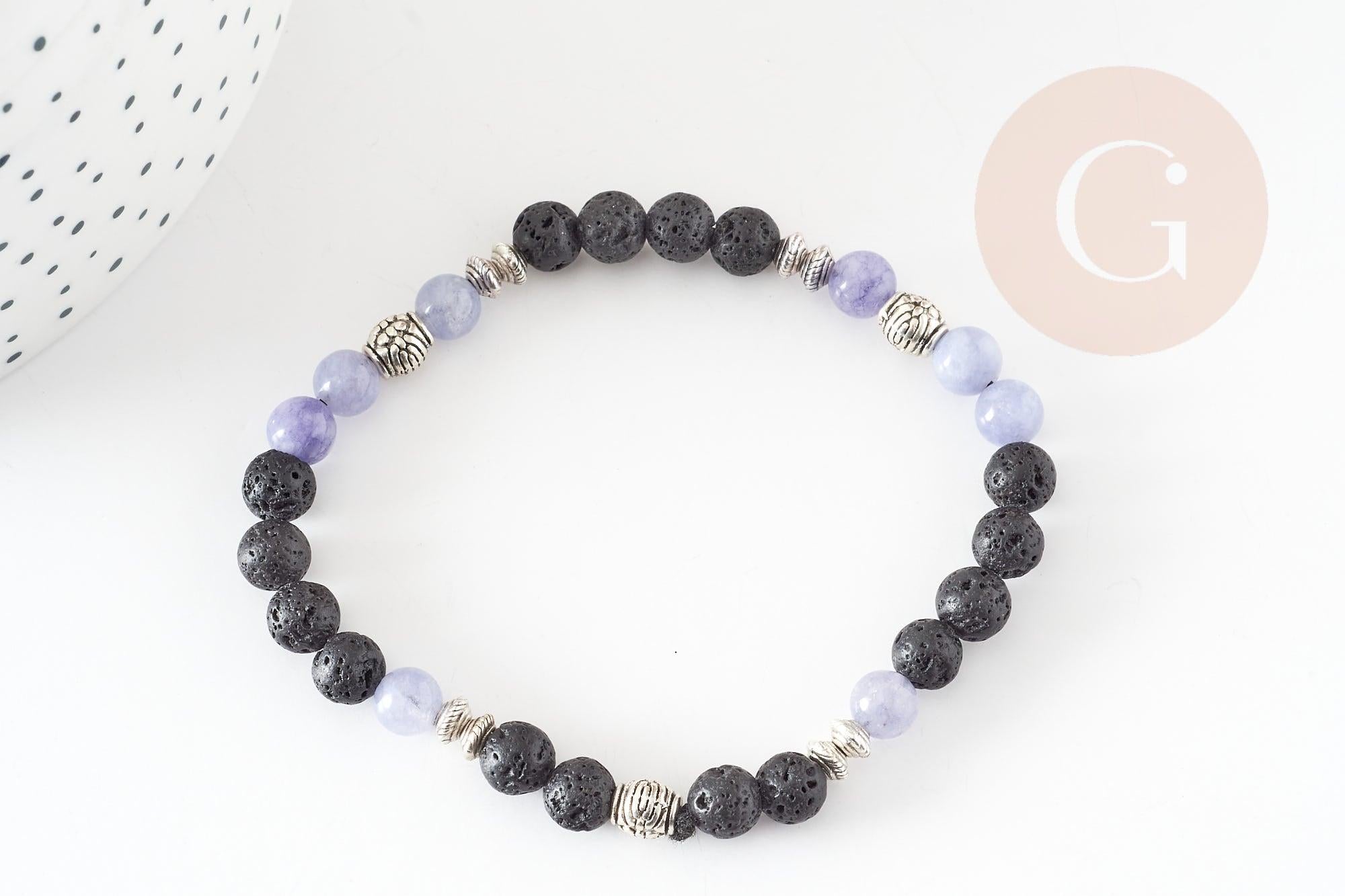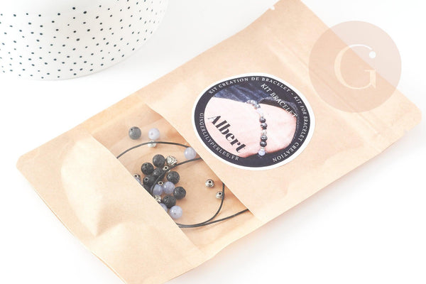 Kit Bracelet pour Homme lave et jade naturelle zamac argenté ALBERT, x1 pochette 1 bracelet (G9179)