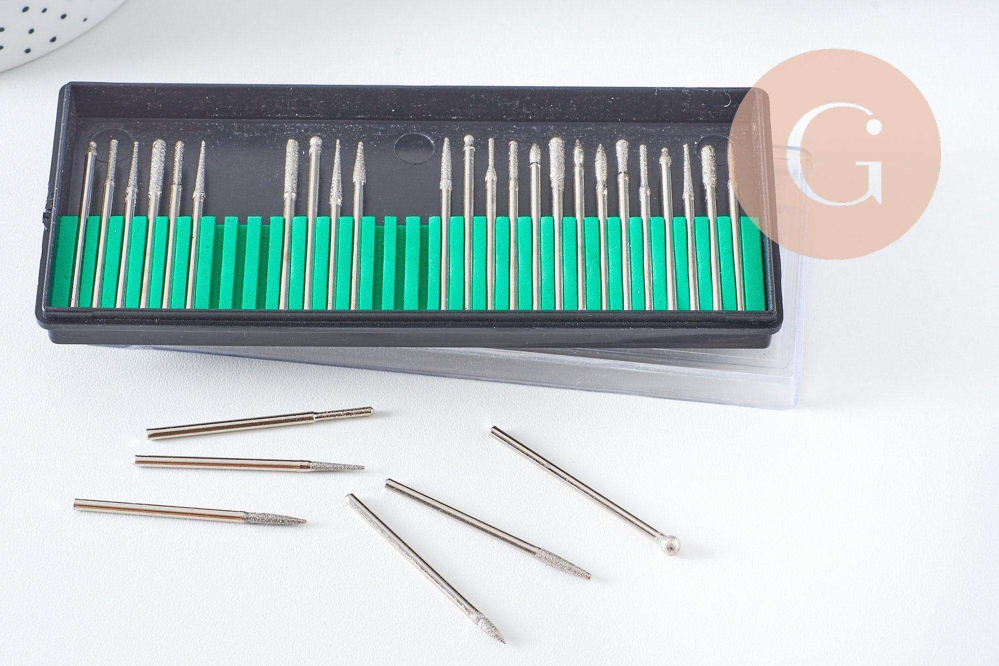 Tous les forets et les mèches de ponçage et de polissage ont une tige de 2,35 mm et s'adaptent au système de mni-perceuse