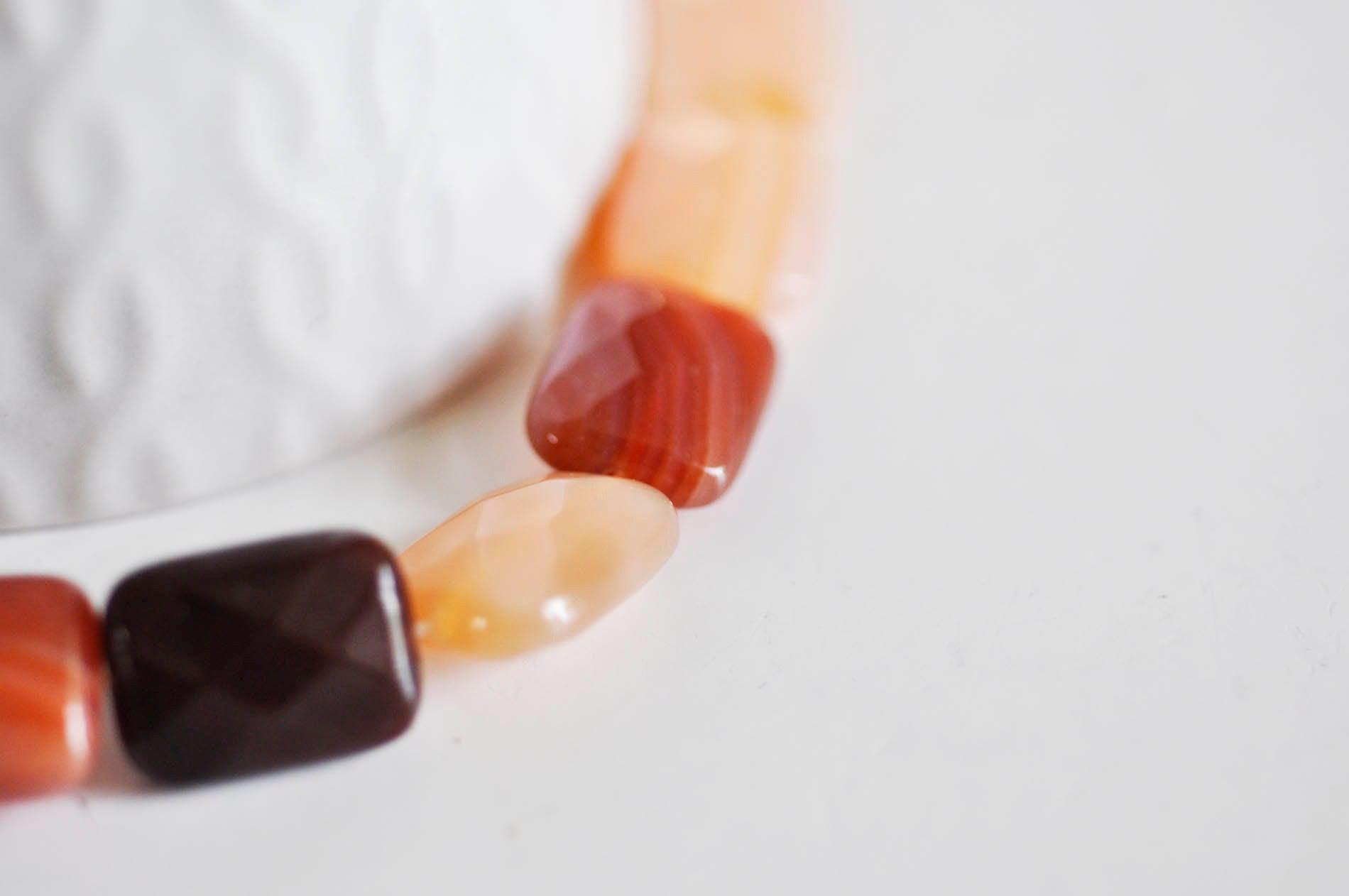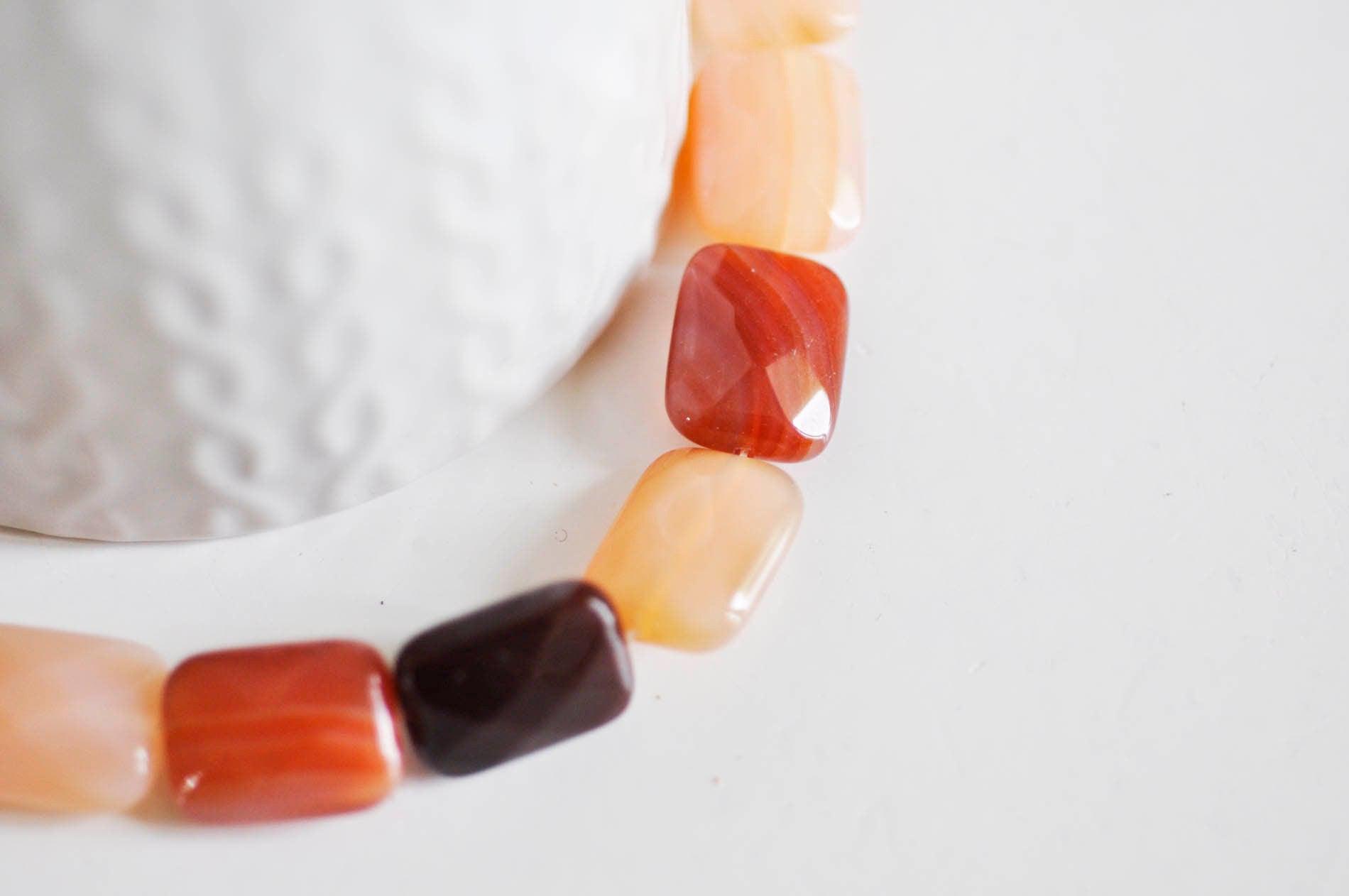 EP Perle cornaline orange naturelle rectangle, x1 fil de 13 perles (G1355)