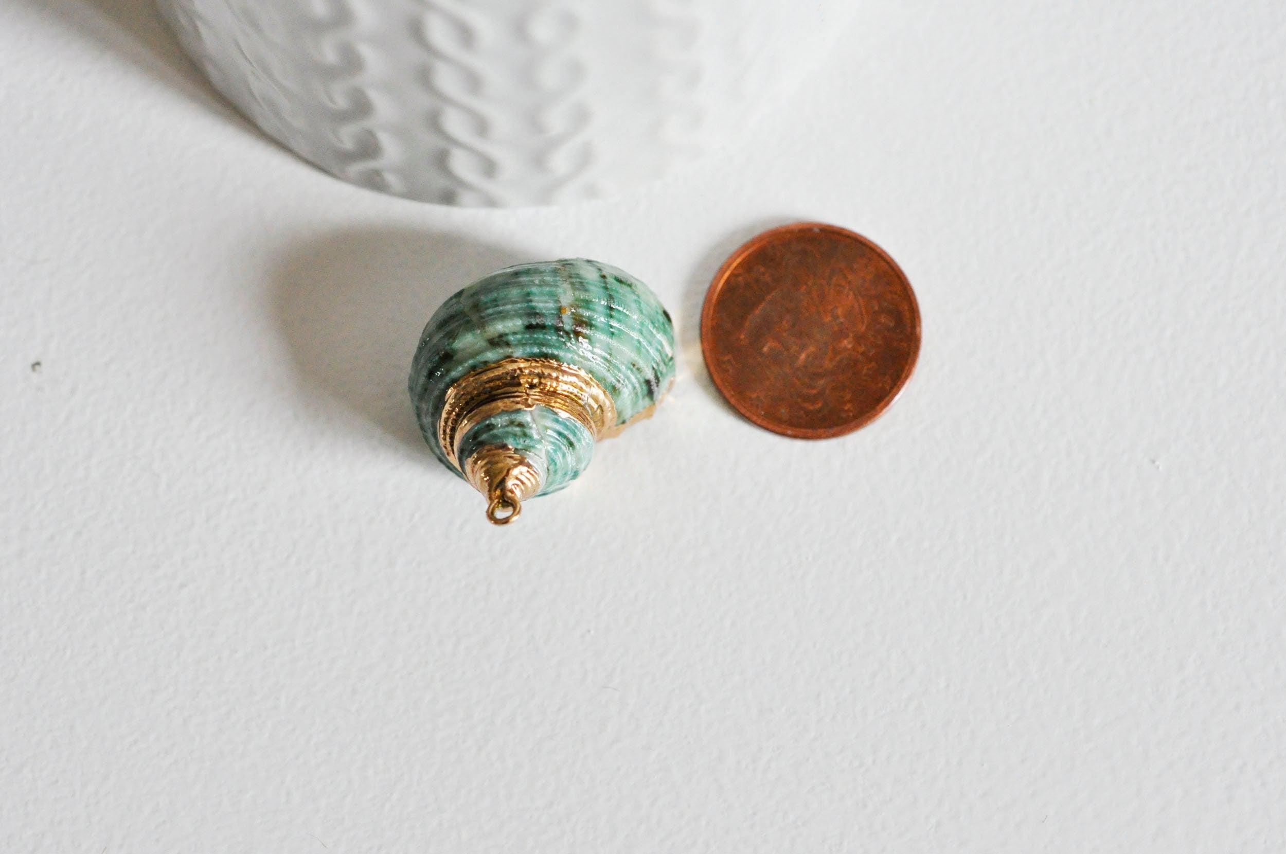 EP Pendentif coquillage naturel vert doré 25mm-G0609
