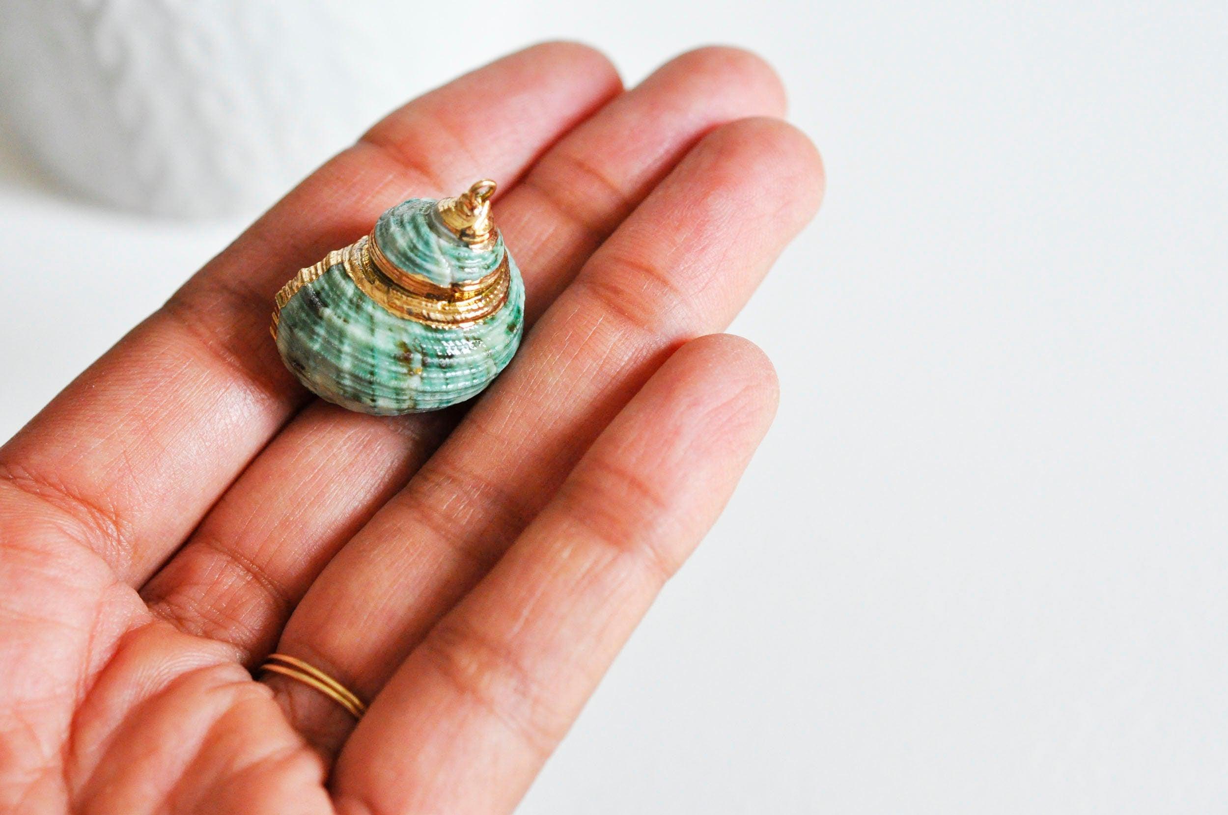 Un élégant pendentif en coquillage naturel de types Conch,Tous les coquillages sont propres et prêts à être utilisésCouleur: vert avec les arrêtes dorées Largeur : 20~30mmLongueur : 15~21mmEpaisseur : 10~16mmTrou : 2mm Des pièces naturelles et ravissantes pour vos créations...
