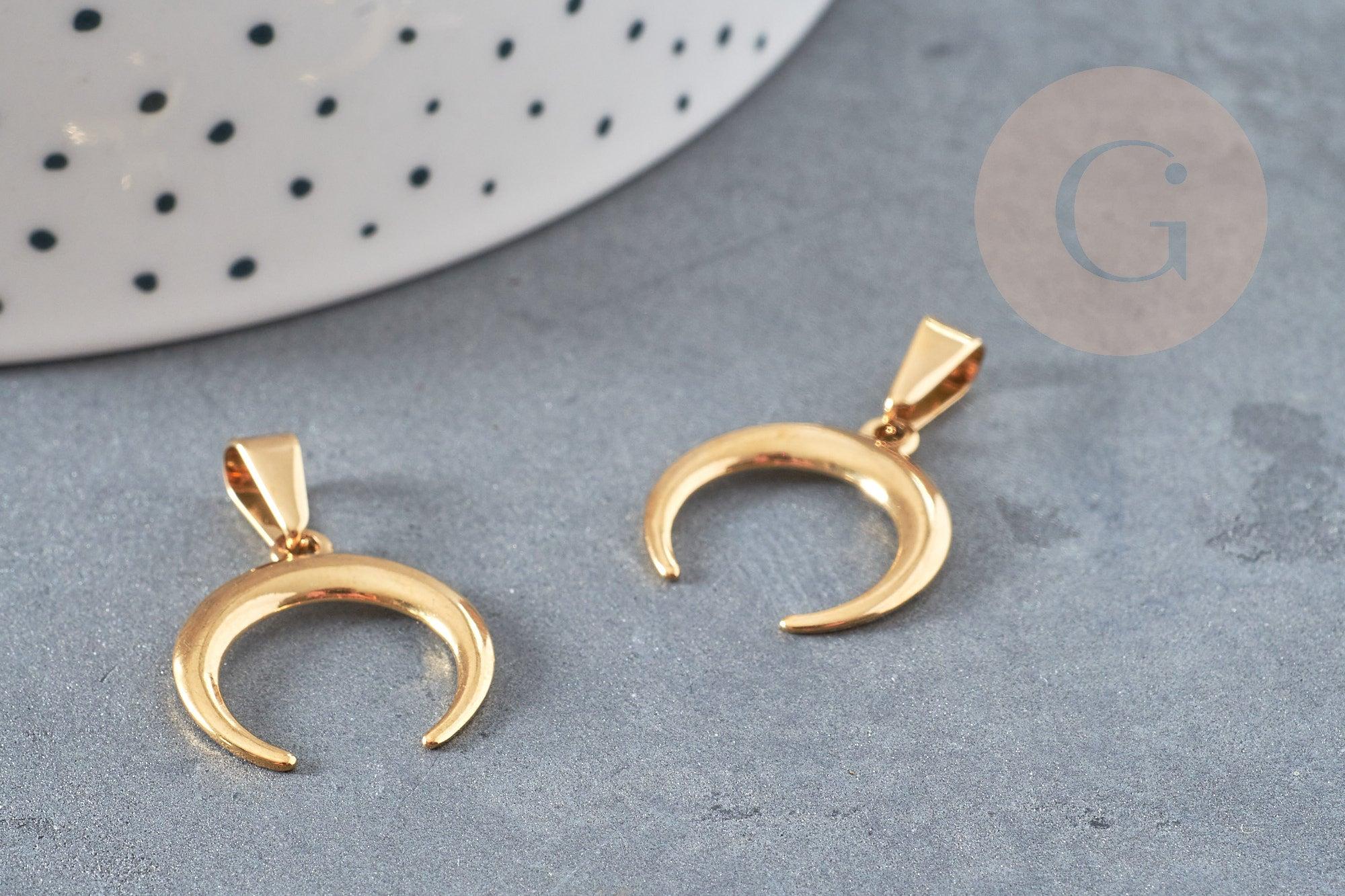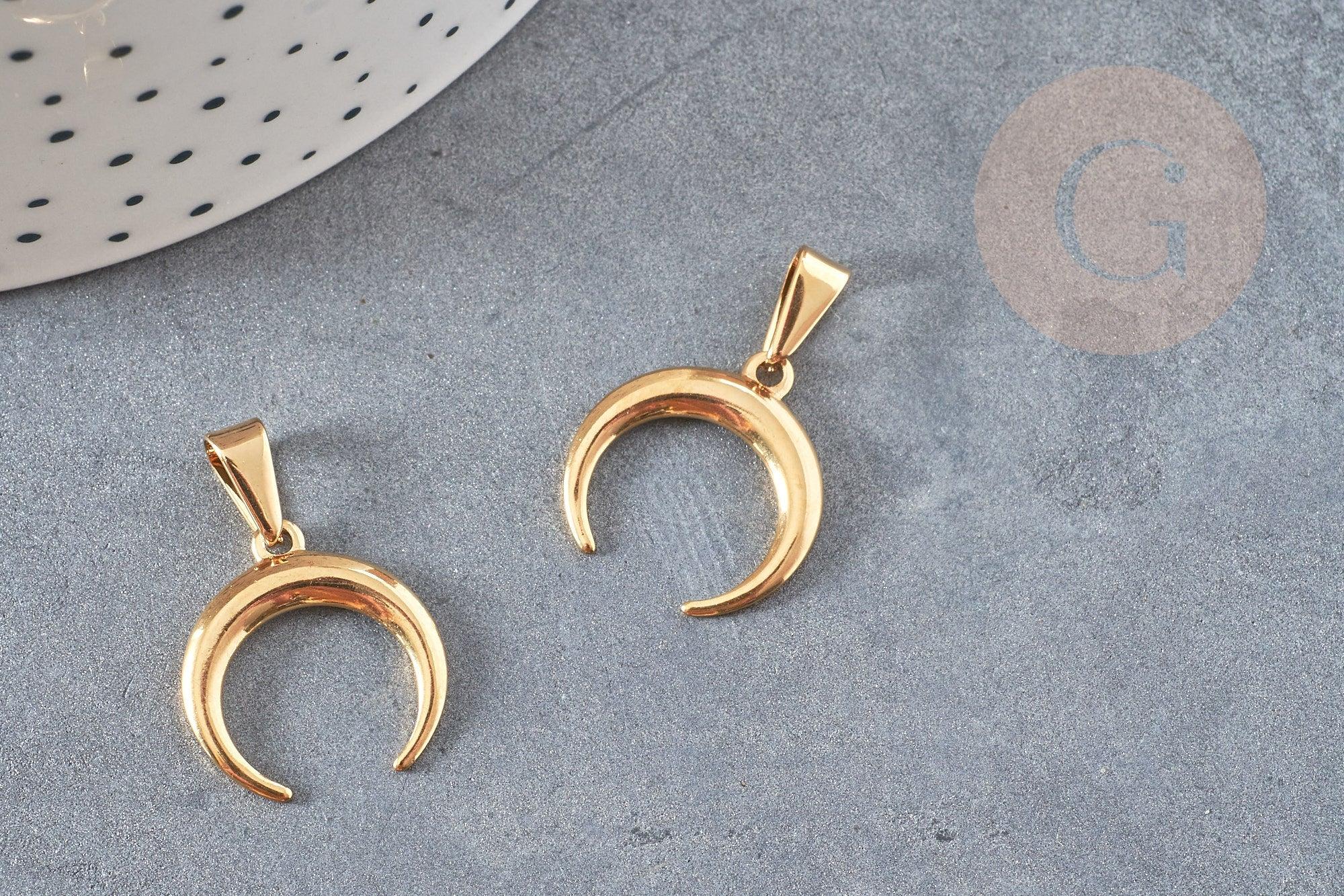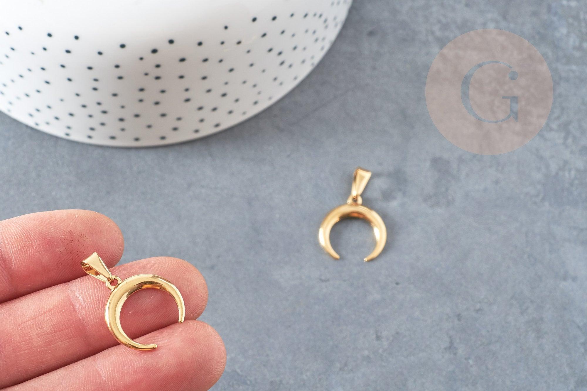 Idéal pour la création de bijoux fantaisie, ce pendentif en forme d'une demi-lune est en acier inoxydable doré.