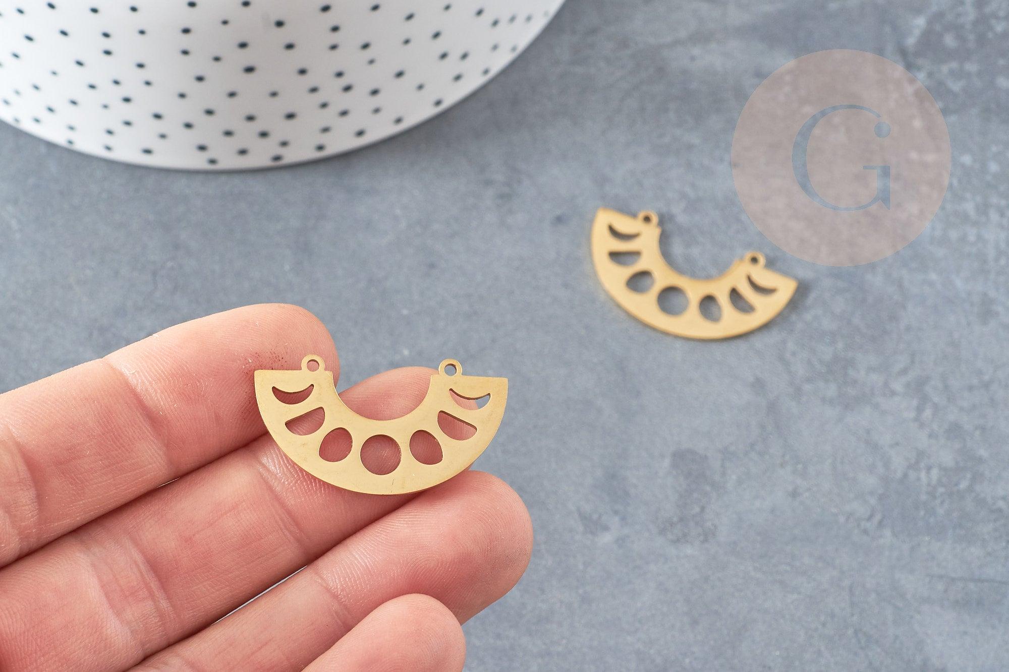 Pendentif demi-cercle géométrique acier 201 inoxydable dore 32mm ,breloque acier inoxydable doré pour création bijoux, x1 G5731