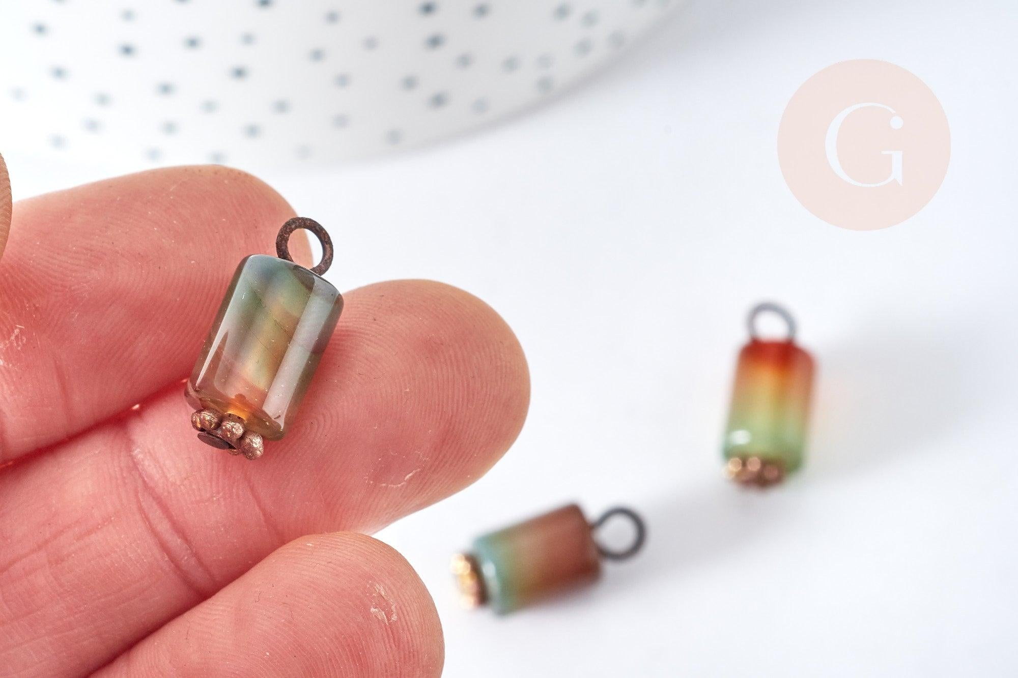 Pendentif Agate naturelle multicolore colonne fer doré 17.5mm, création bijoux pierre naturelle, x1 G8395