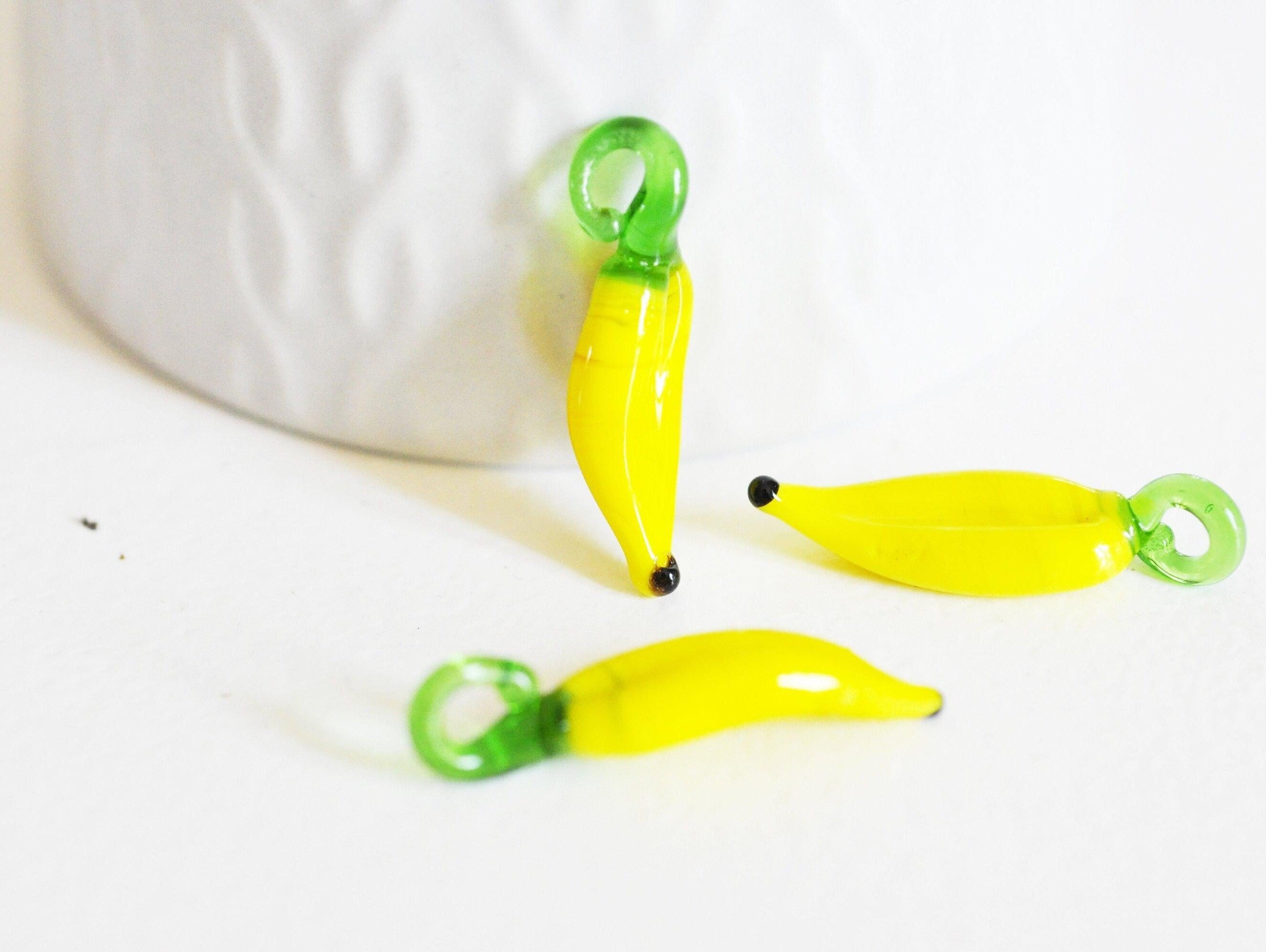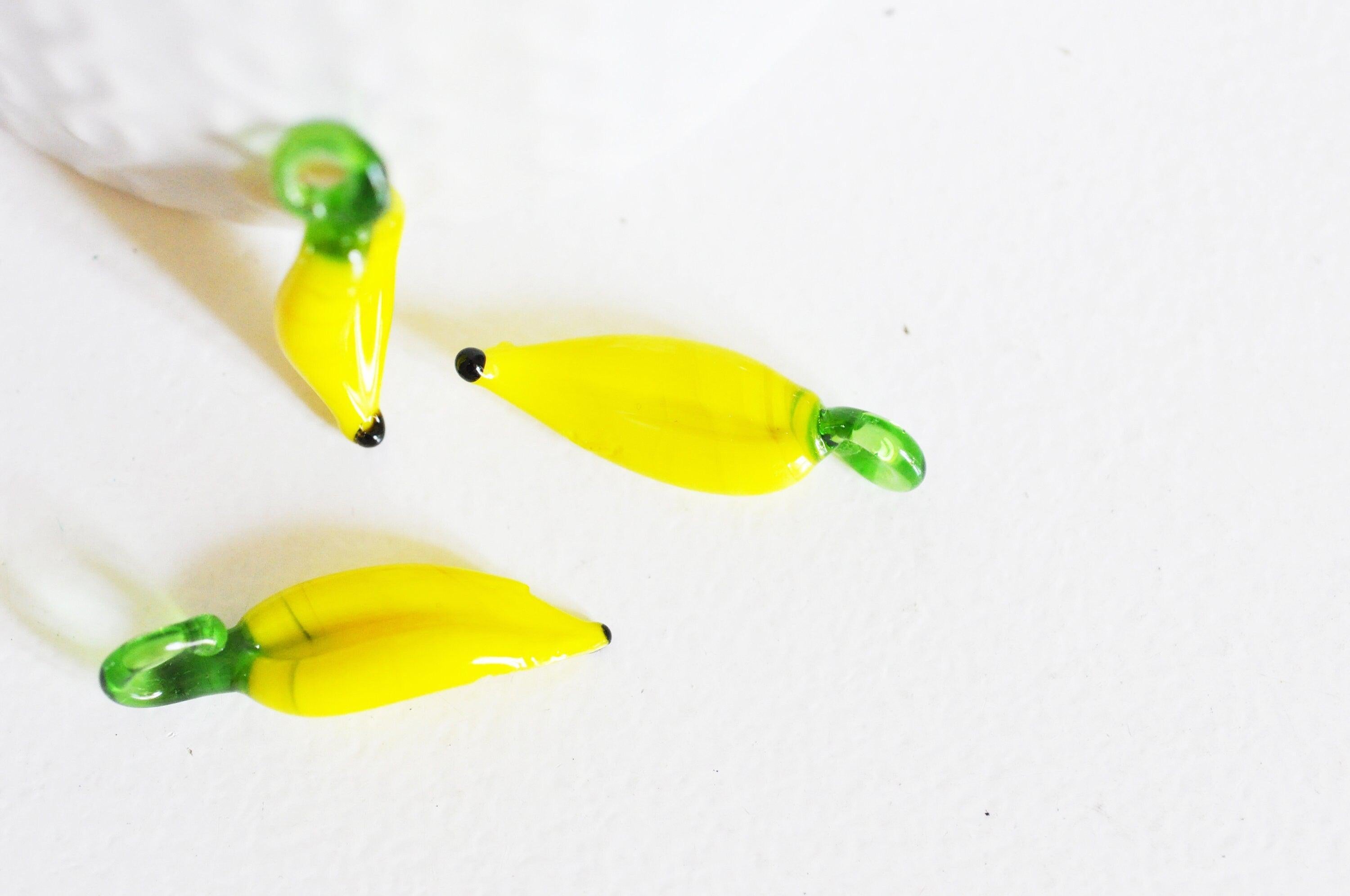 Pendentif banane fruit verre artisanal,perle verre tchèque,fruit verre,pendentif verre,verre artisanal,pendentif chance,25mm,les 5