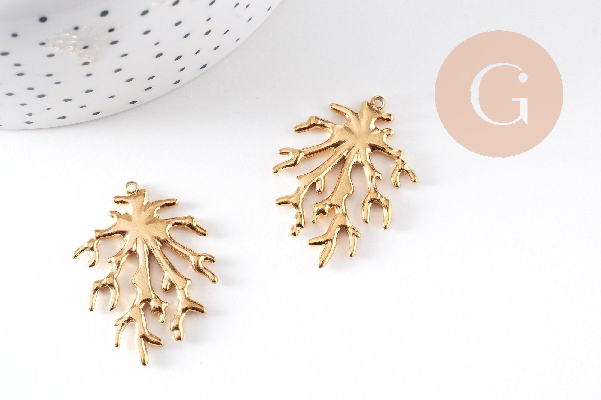 Ce pendentif en forme de branche de corail en acier inoxydable 304 doré à l'or fin 18K est parfait pour apporter une touche marine, élégante et estivale à vos créations. Son design organique et finement travaillé en fait une pièce forte, idéale en pendentif central sur un collier.