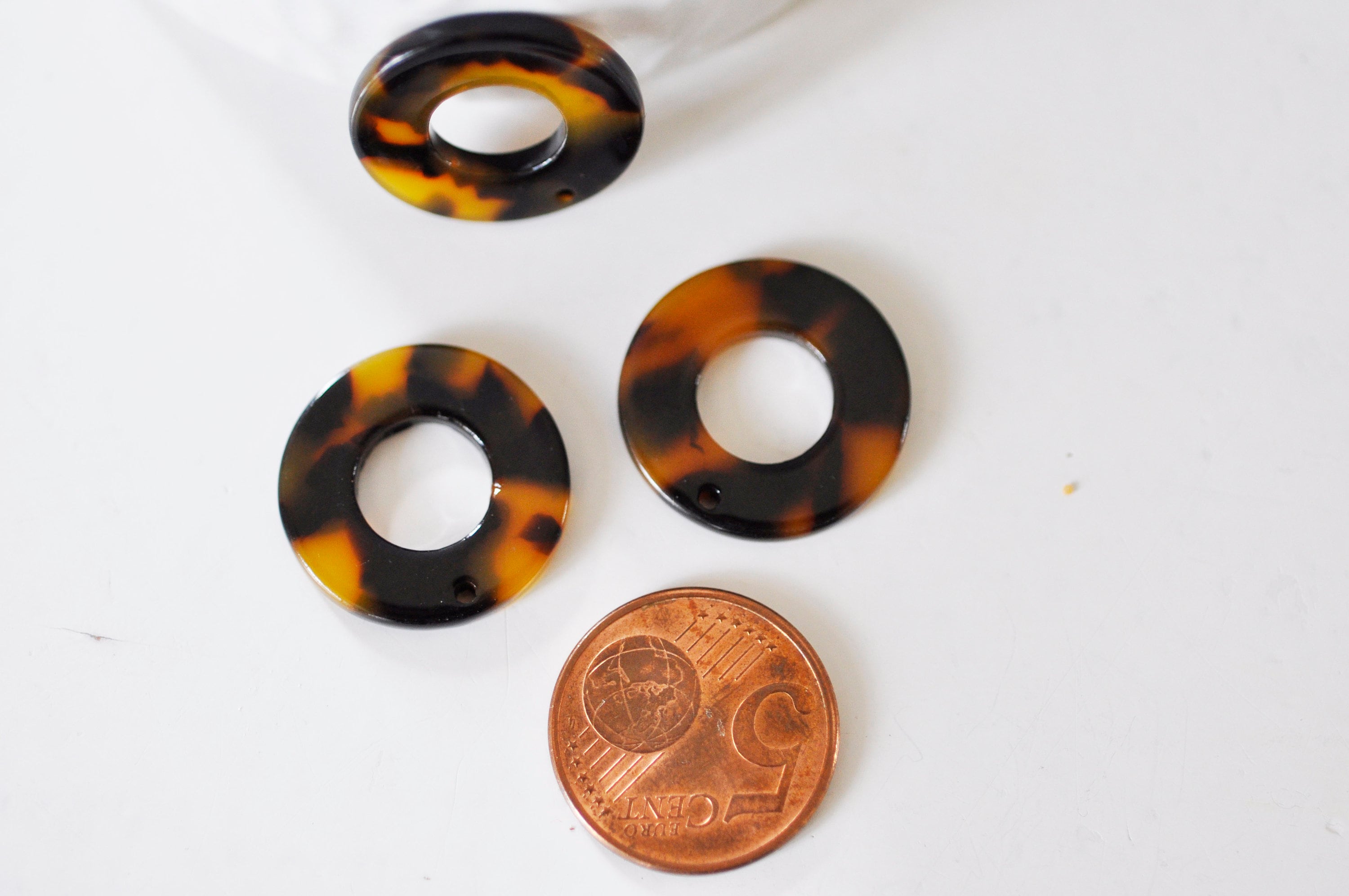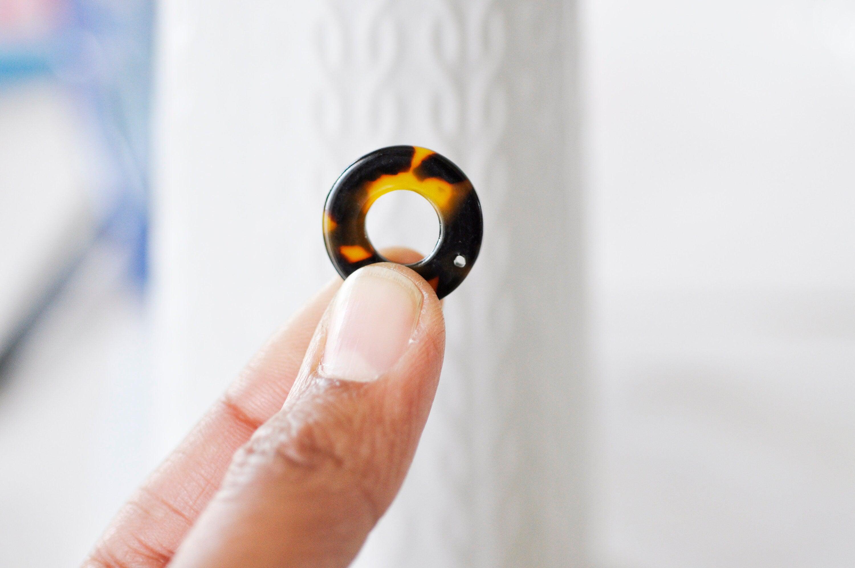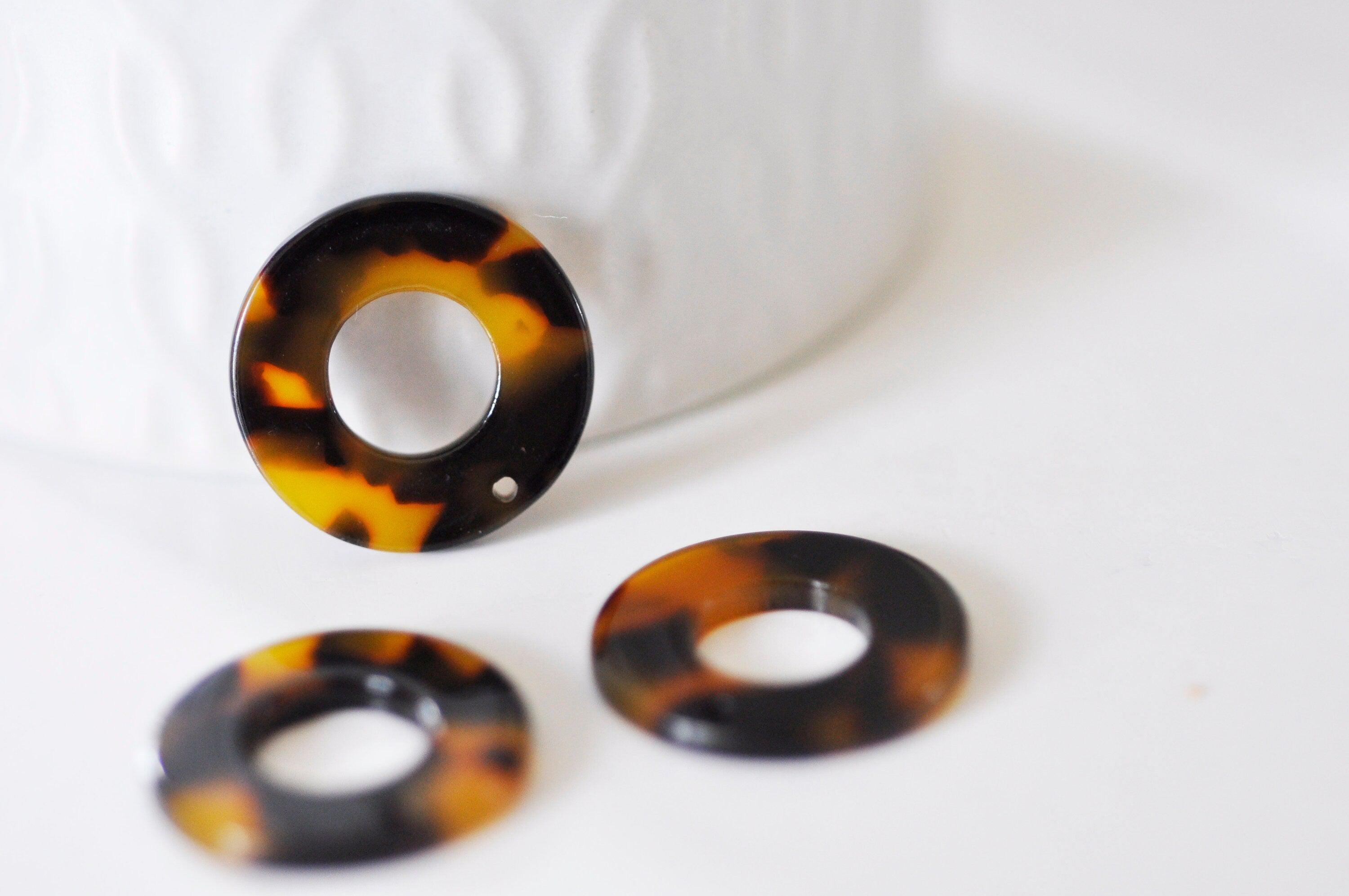 Pendentif cercle karge en acetate de cellulose de couleur marron-noir façon écaille pour réaliser des colliers et boucles modernes et très tendances