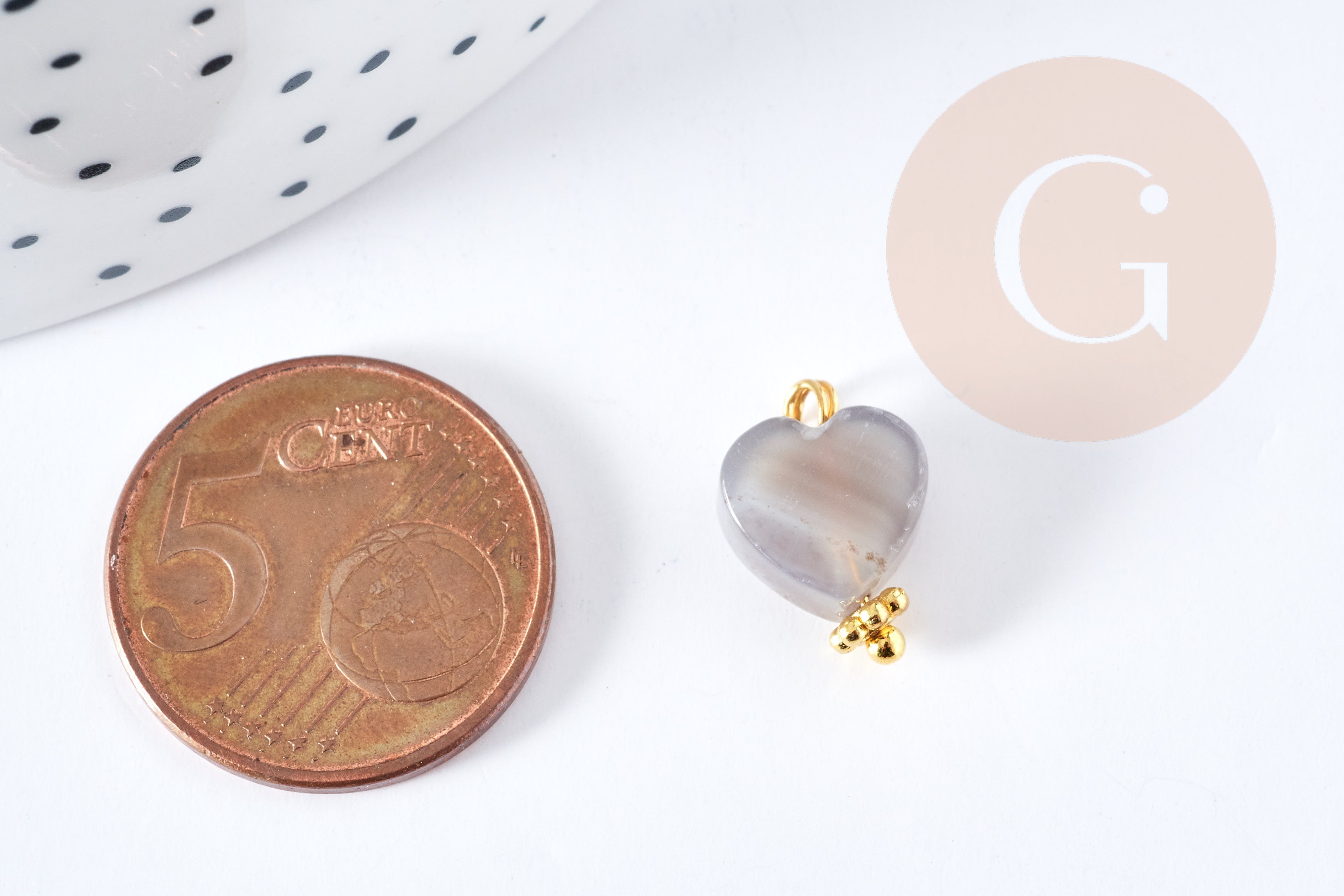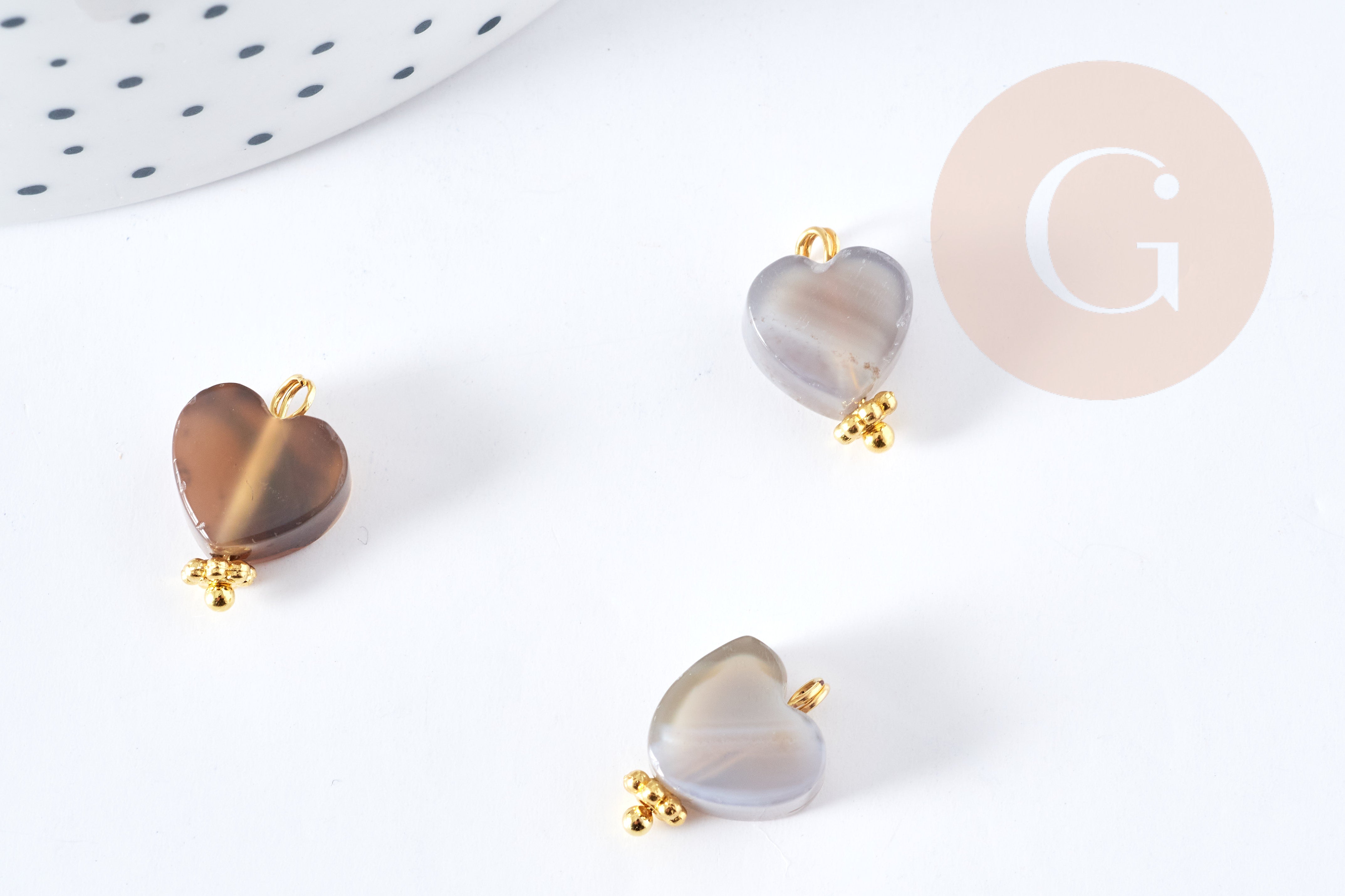 Succombez au charme de ce pendentif en forme de cœur en agate grise naturelle aux reflets doux et élégants. Monté sur une tige en laiton doré et accompagné d'une perle intercalaire en zamac doré, ce bijou symbolise la douceur, la protection et l’équilibre émotionnel.