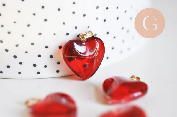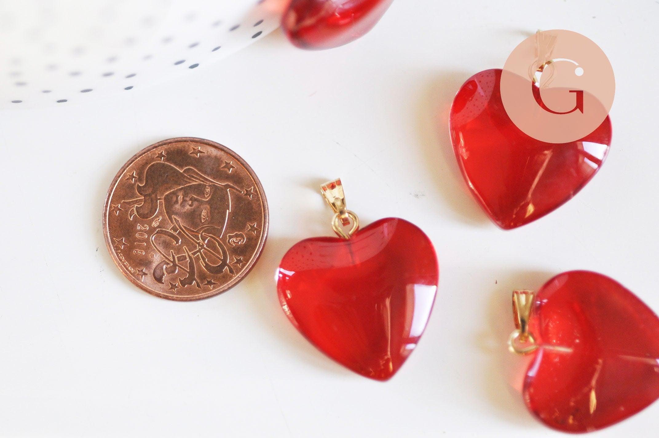 Ajoutez une touche romantique et éclatante à vos créations DIY avec ce superbe pendentif en forme de cœur, en verre rouge transparent monté sur un support en métal doré. Un apprêt tendance et élégant pour créer des bijoux uniques et pleins d’émotion.