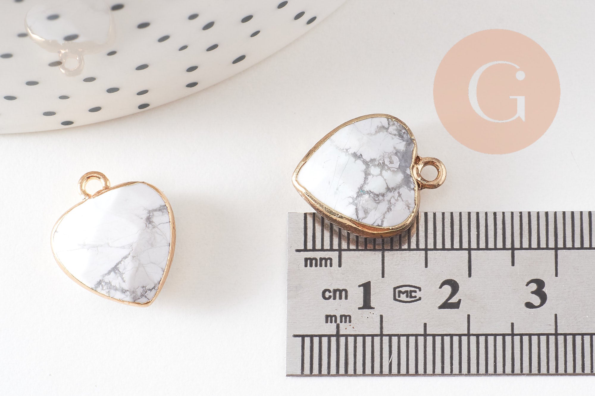 Pendentif coeur howlite facettes,pendentif bijoux, pendentif pierre, howlite naturelle, pendentif coeur,17mm