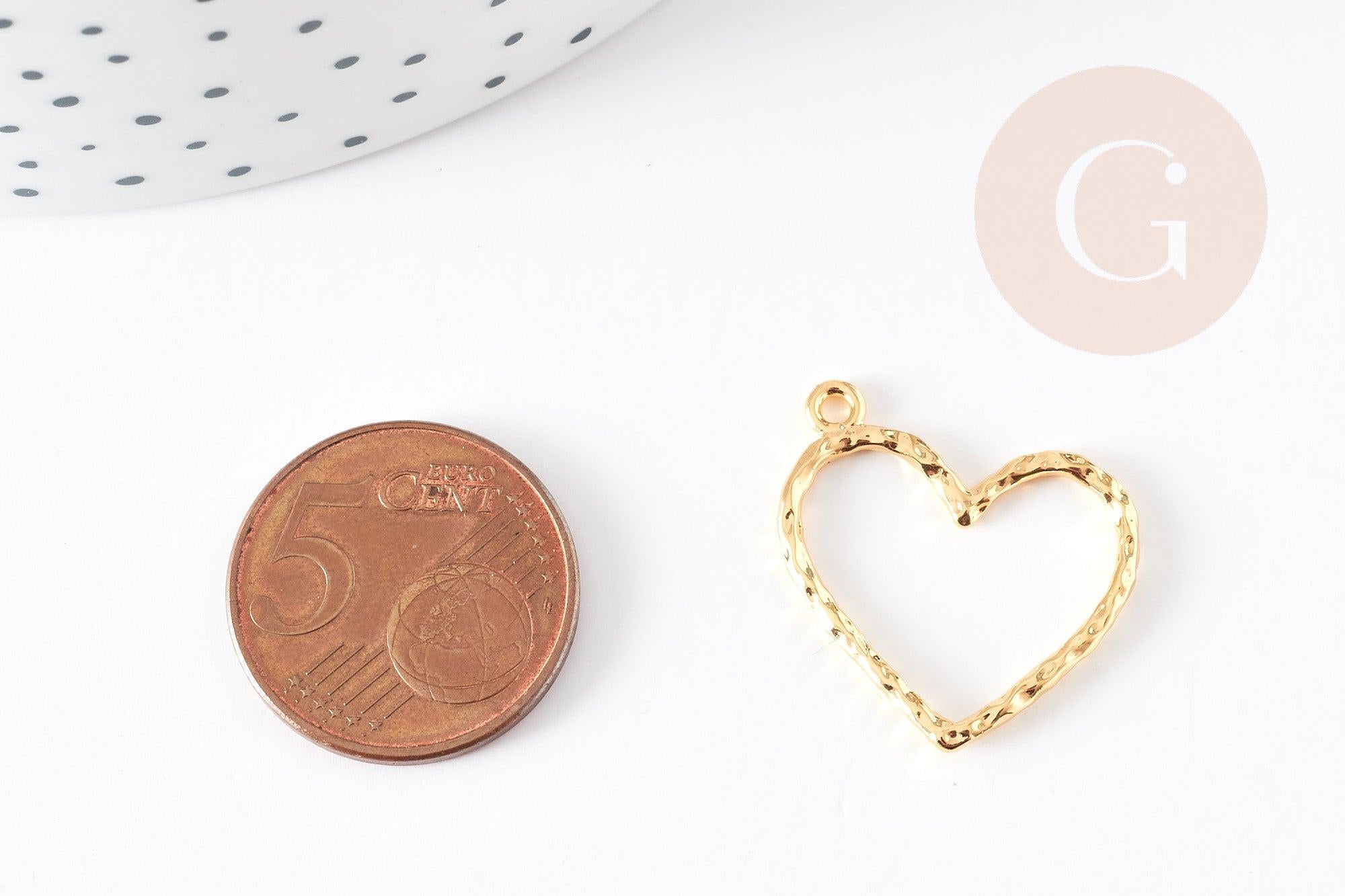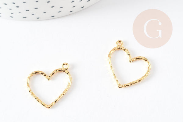Pendentif coeur martelé laiton doré 18K, pendentif géométrique texturé création bijoux, 23x22mm, x2 G5529