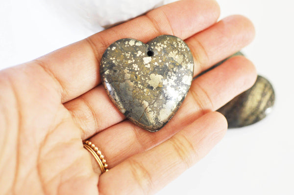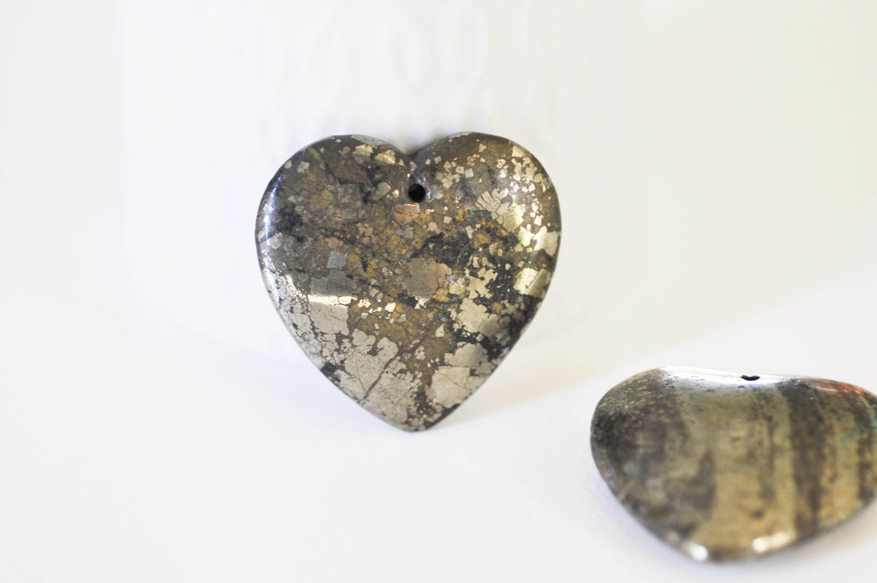 Pendentif coeur pyrite grise, fournitures créatives, pendentif goutte, pyrite naturelle,pierre naturelle,création bijoux,40x40mm