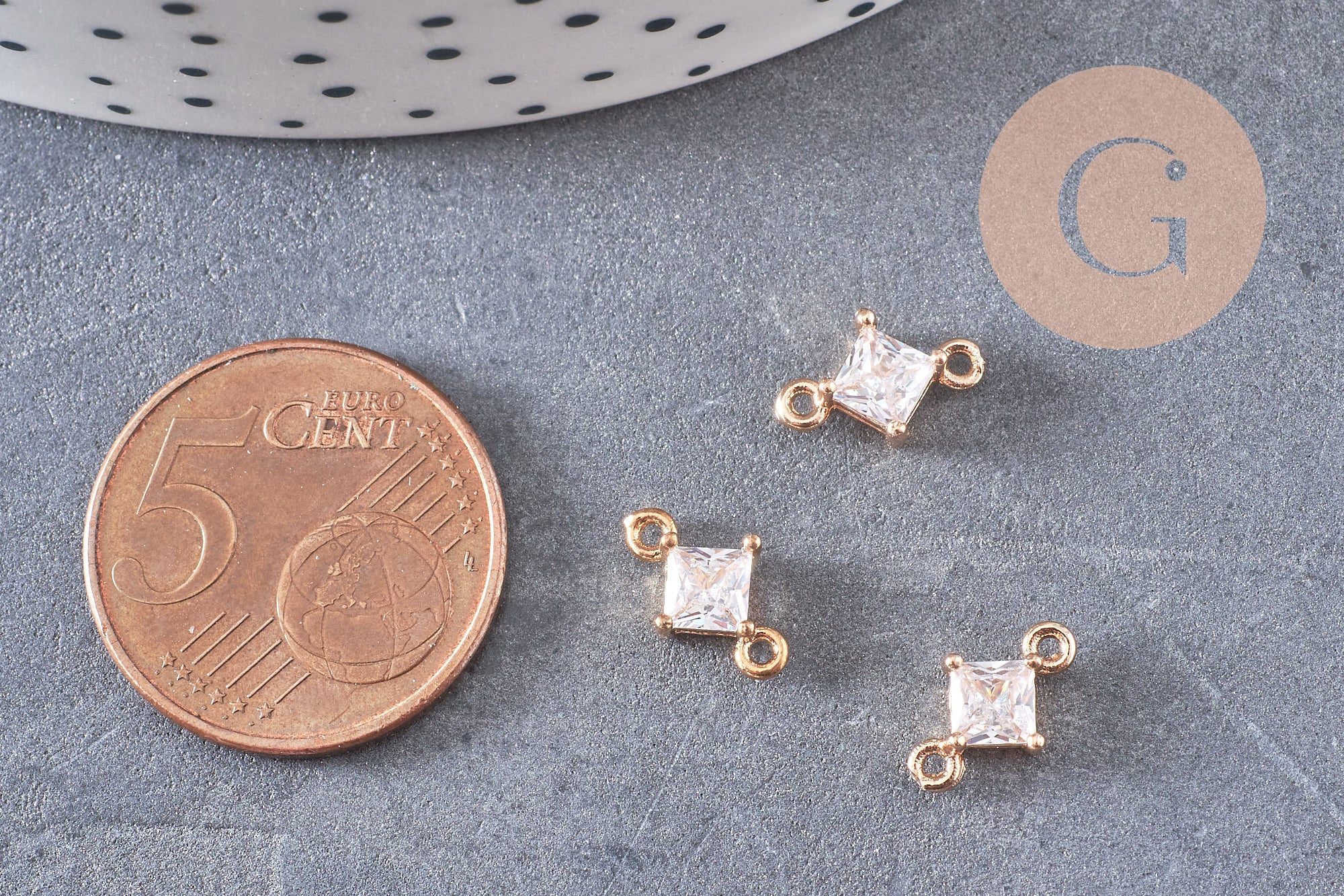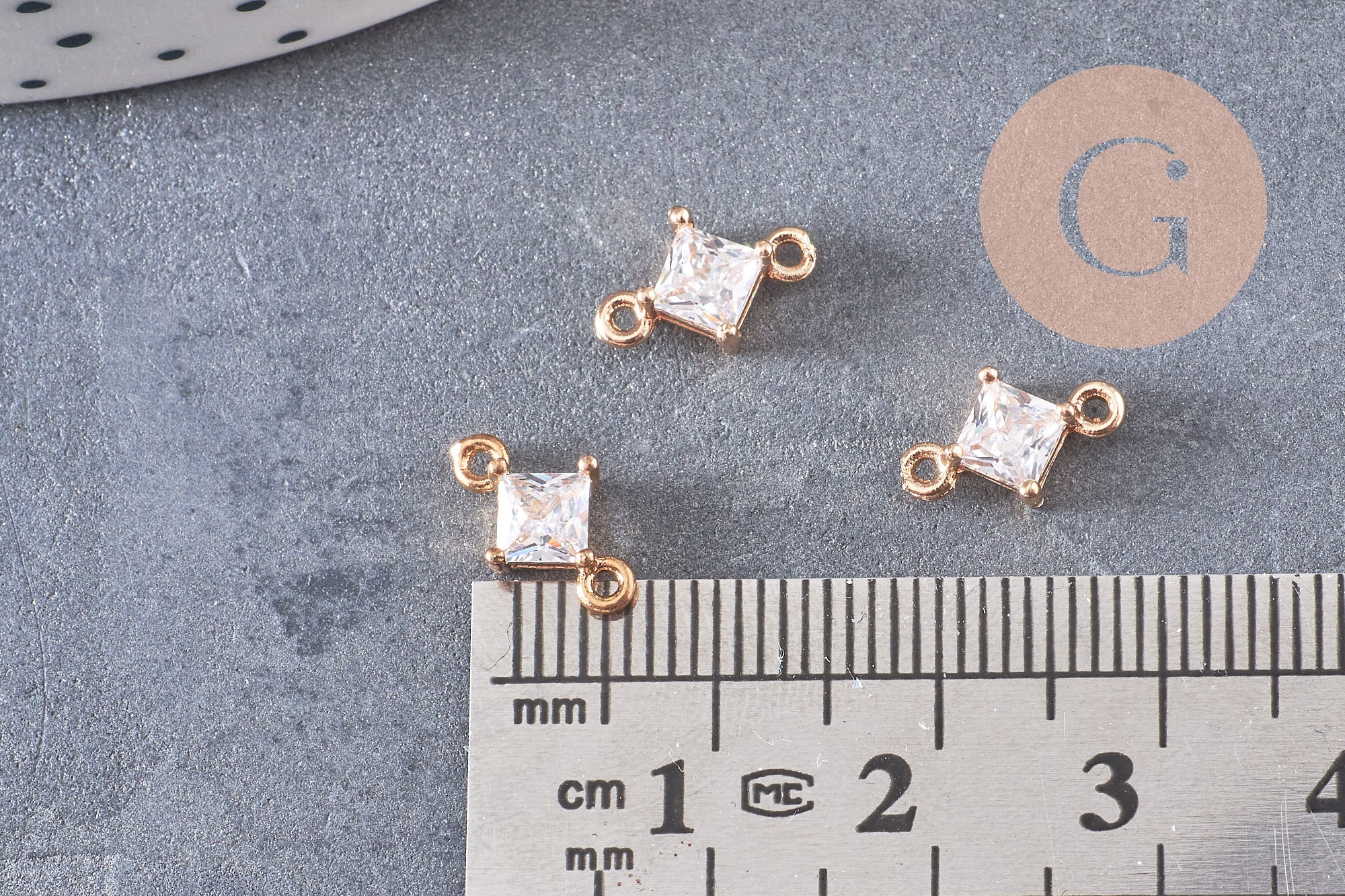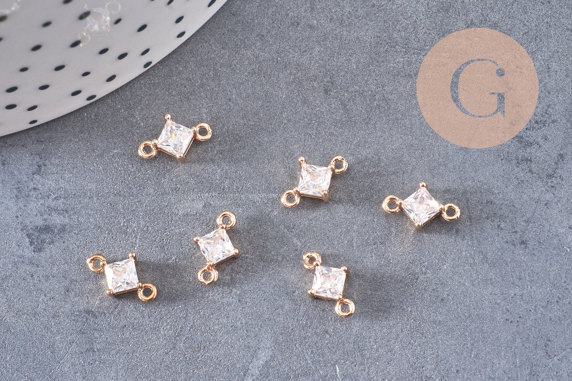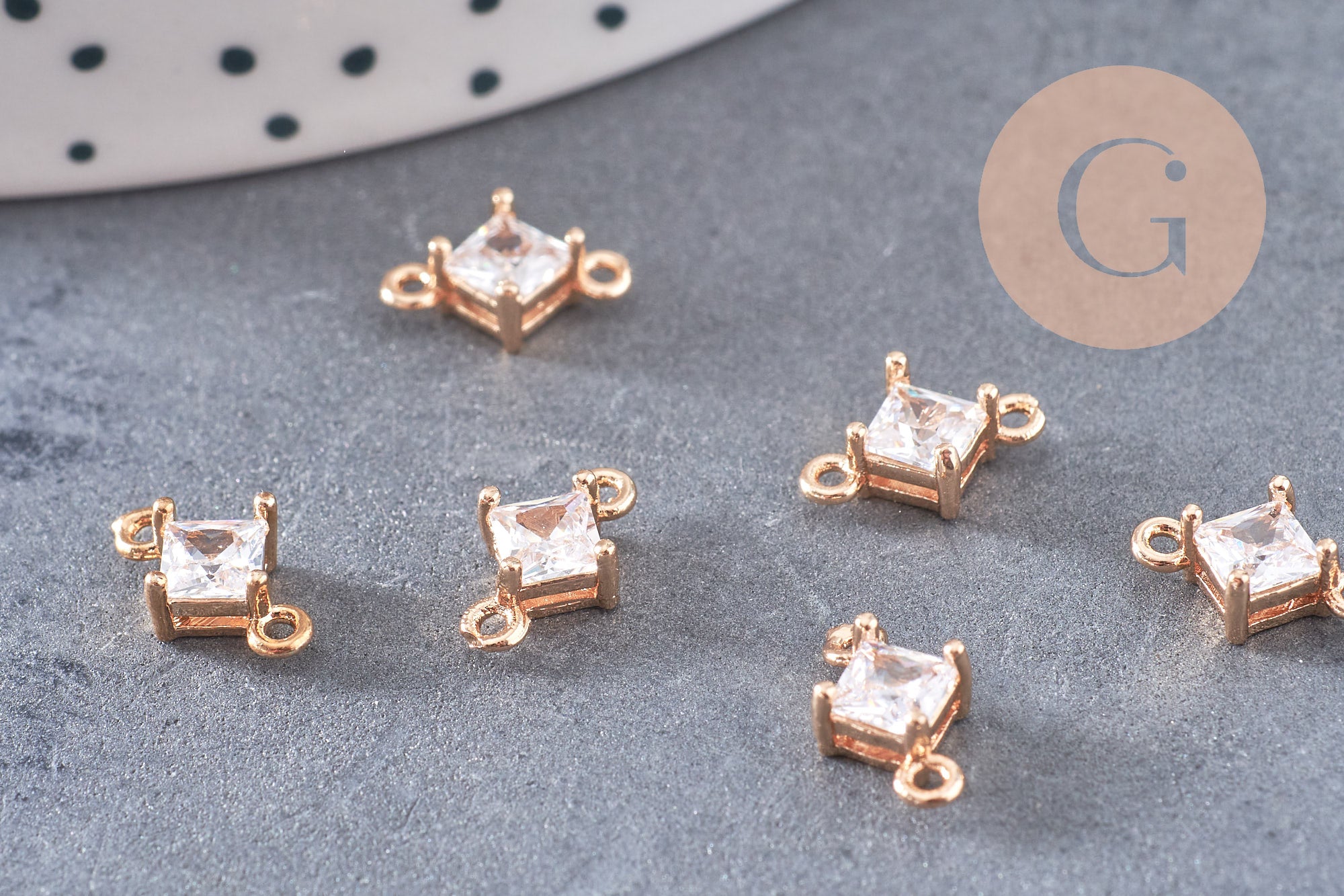 Craquez pour ce joli pendentif connecteur carré en cristal blanc, serti de laiton doré.