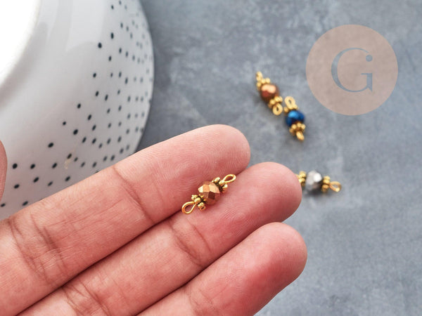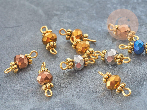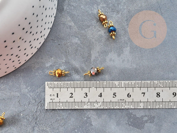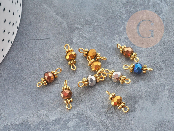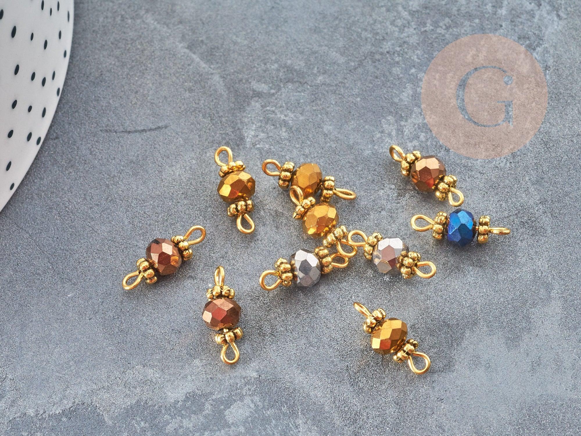 Ajoutez une touche d’éclat à vos créations avec ce lot de pendentifs connecteurs ronds en verre facetté irisé sertis dans du zamac doré. Leur finition brillante aux reflets multicolores apporte de la lumière et de la fantaisie à vos bijoux DIY. Ces connecteurs sont parfaits pour les créations modernes et pétillantes !