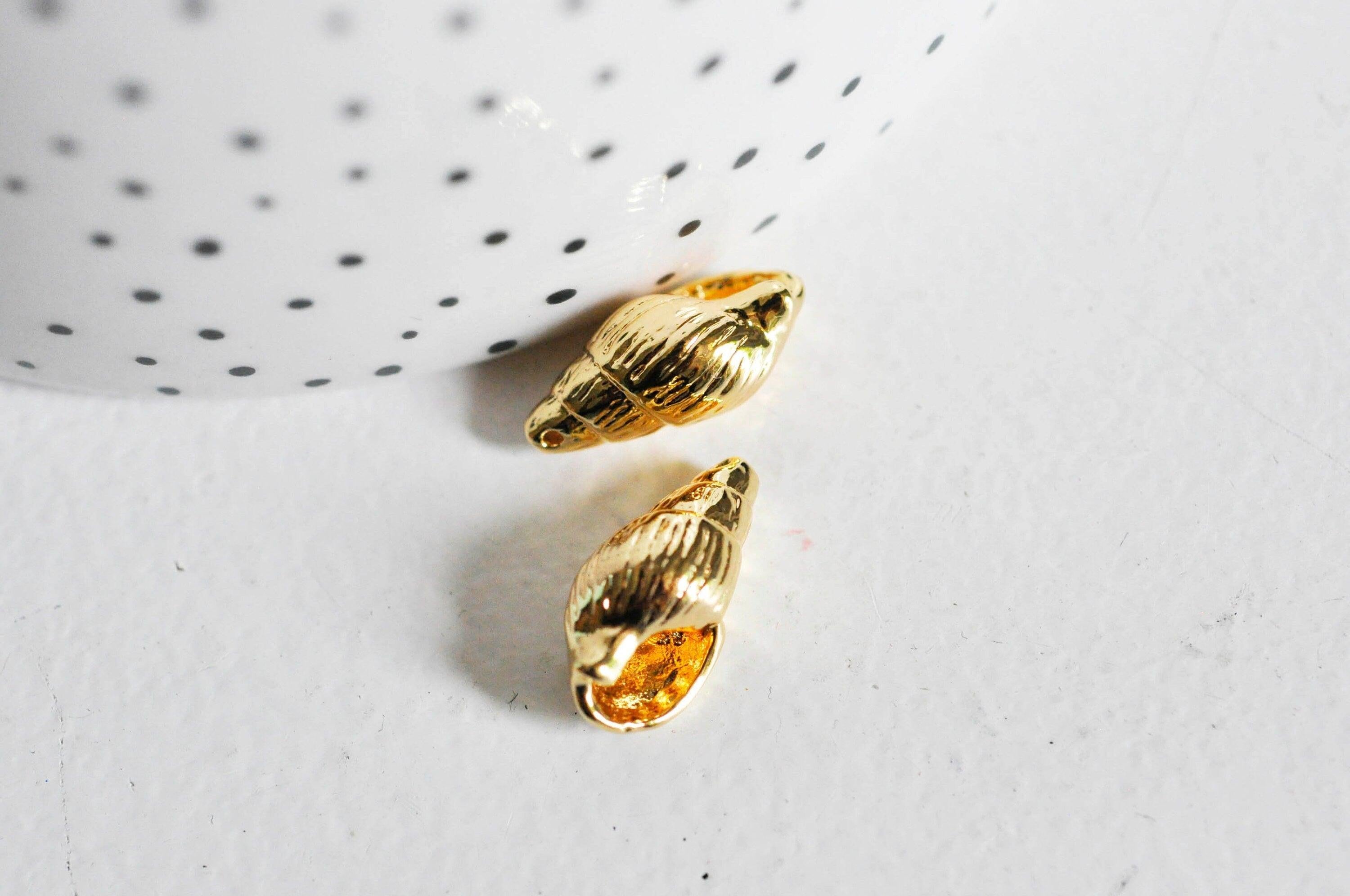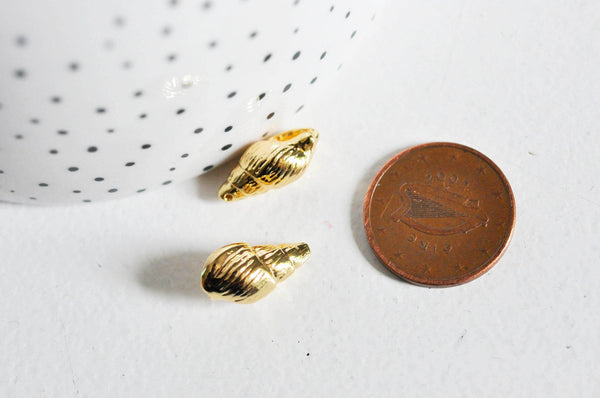 Pendentif coquillage doré 18K, coquillage doré,dorure 18carats,pendentif doré,coquillage or,création bijoux, x 2, 16.5mm G3584