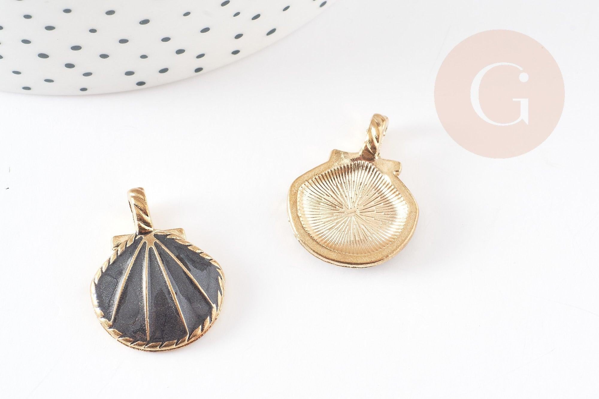 2 coquillages en métal doré recouvert de resine transparente de couleur noire.